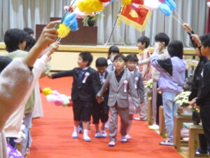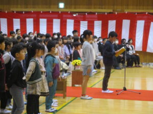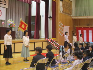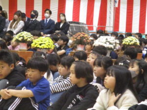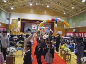 今日は、秩父市教育委員会教育長様はじめたくさんのご来賓に参列いただき、影森小学校入学式が挙行されました。保護者の皆様、おめでとうございます。入学した54名の1年生は、校長先生、ご来賓のお話をしっかり聞けて立派でした。6年生代表とお兄さんお姉さんの歓迎の言葉にあったように、今日から影森小学校の仲間です。困ったことがあったら、周りのみんなに聞いてください。