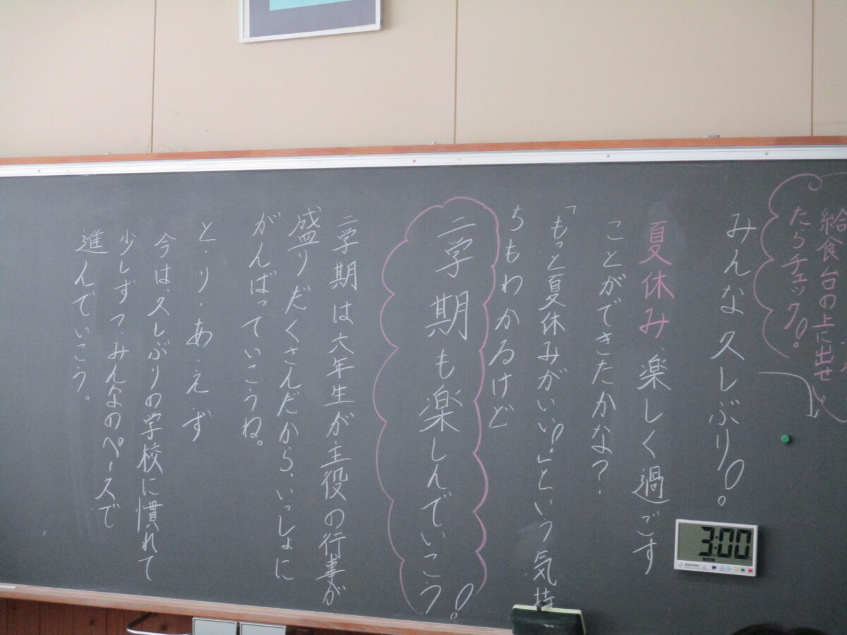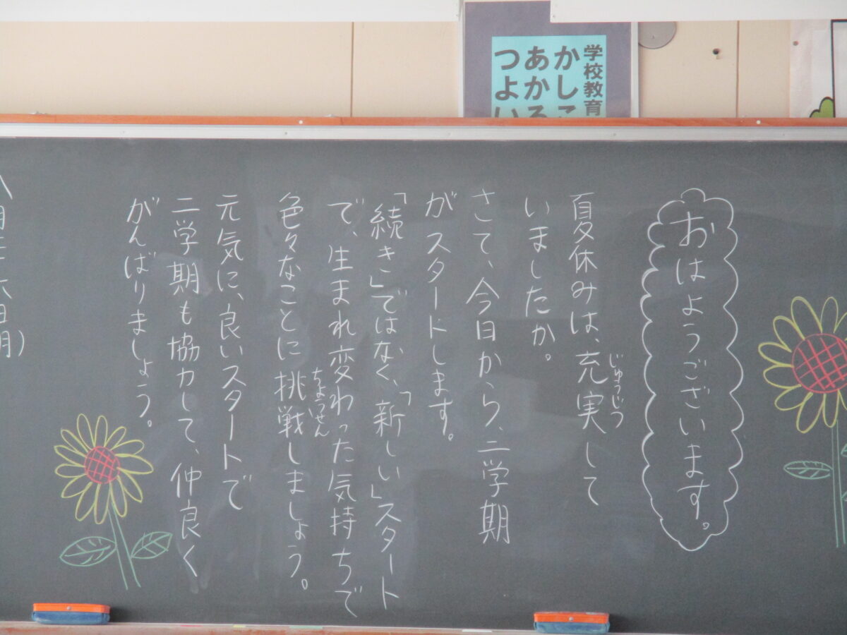 担任の先生からのメッセージです。今日から、始まった2学期、一緒にやっていきましょう。