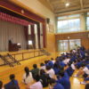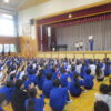 今朝は全校朝会を行いました。校長からは、「読書のすすめ」と「目標に向かって努力すること」についての講話を行いました。読書に親しむことは、考える力につながることの話や、持久走を例に挙げて、目標に向かってこつこつと努力する…