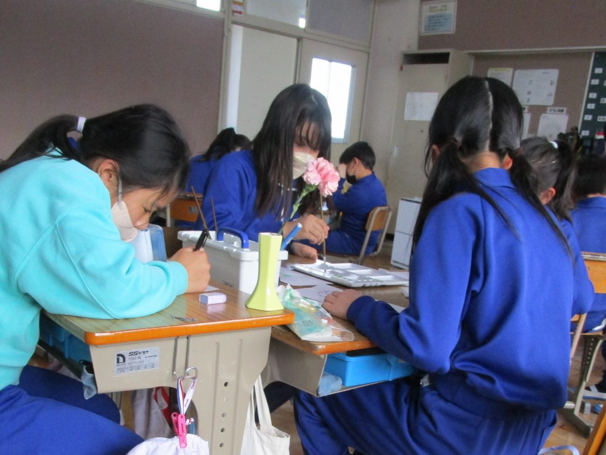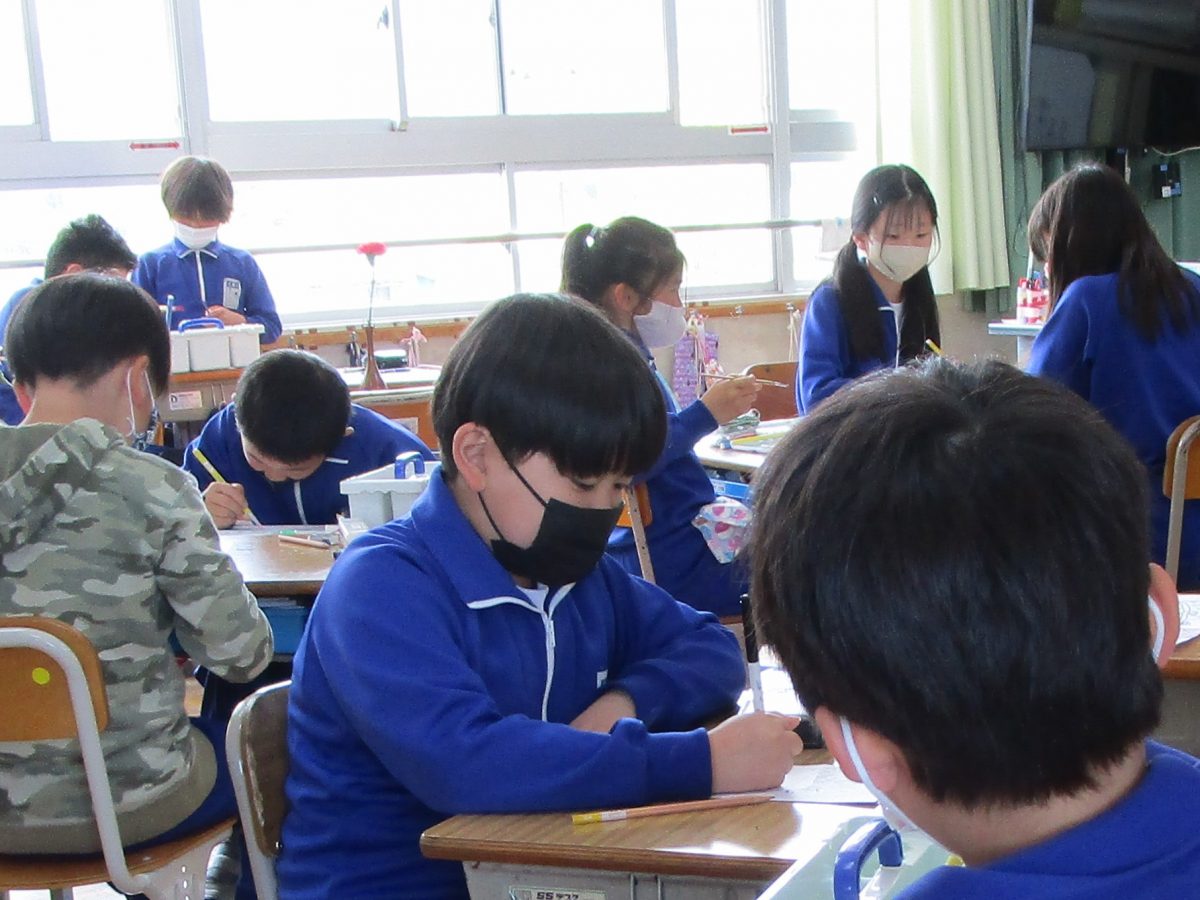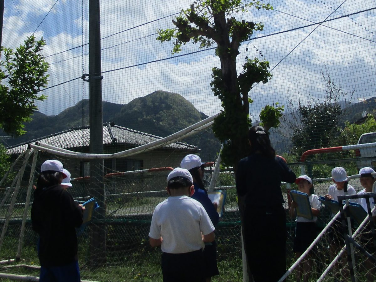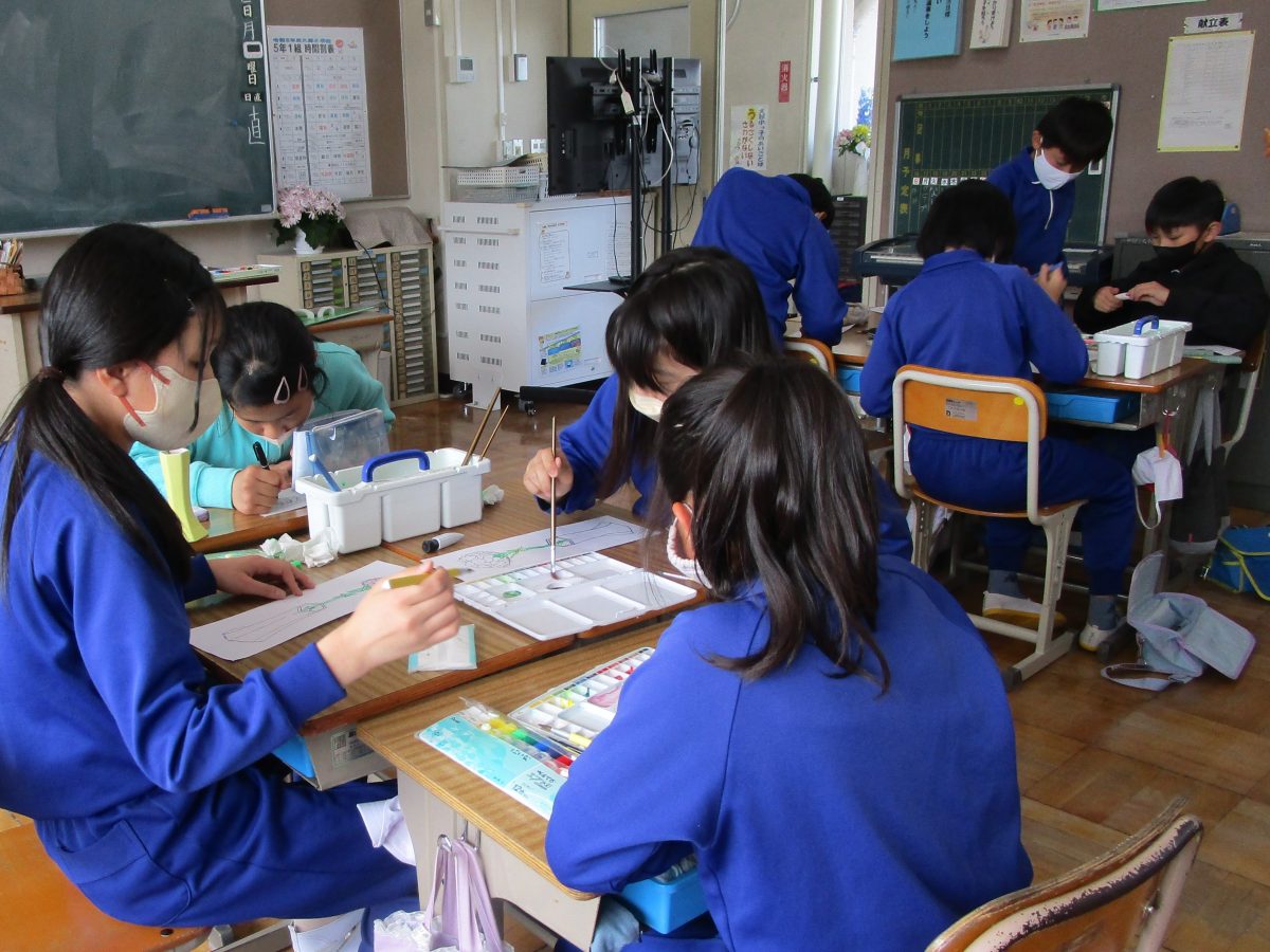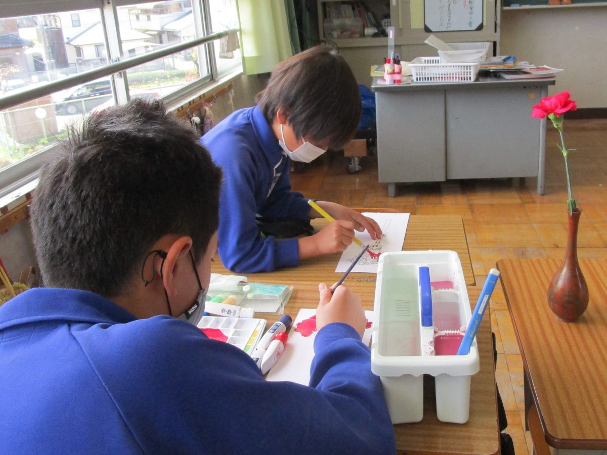 4月17日(月)、今日もよい天気になりました。藤のいい香りが漂うなど、春の季節をいっぱいに感じる日々が続いています。授業でも、4年生は桜と銀杏の木を観察したり、5年生は一輪の花の絵を描いたりして、季節を感じていました。