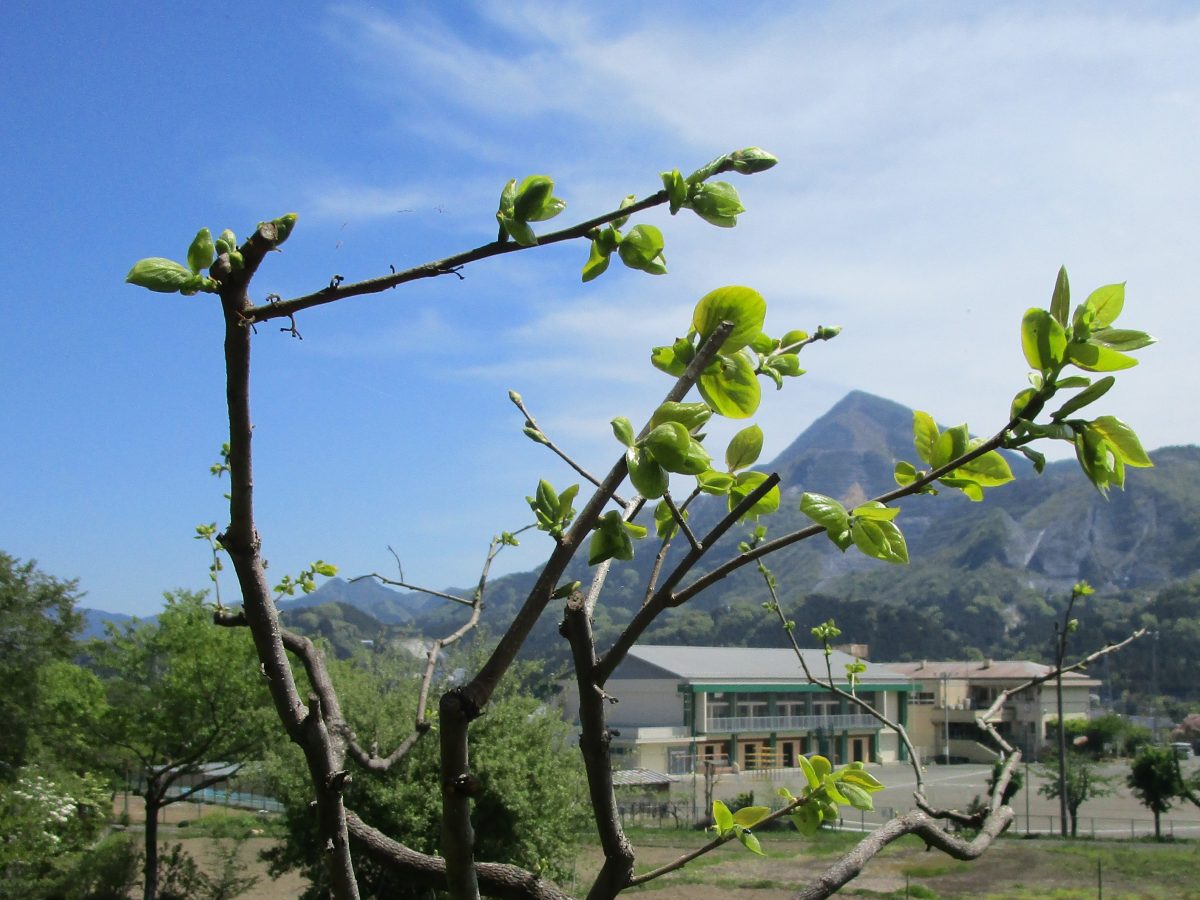 4月19日(水)、今日は2年生と3年生は学力検査を実施しました。果樹園の樹木も新芽が出始めてきました。古くから「教育の道は、家庭の教えで芽を出し、学校の教えで花が咲き、世間の教えで実がなる」と言われています。子供たちのよい芽も出始めているようです。