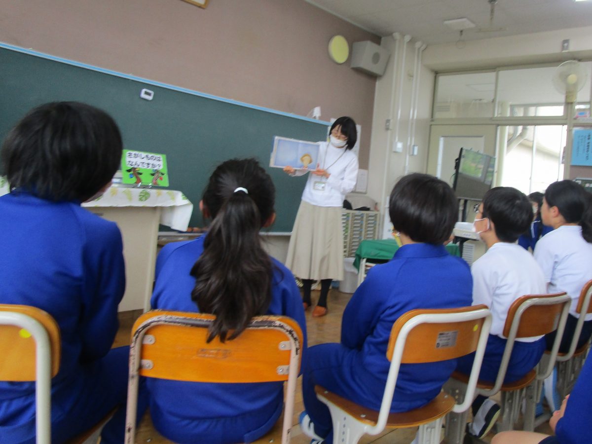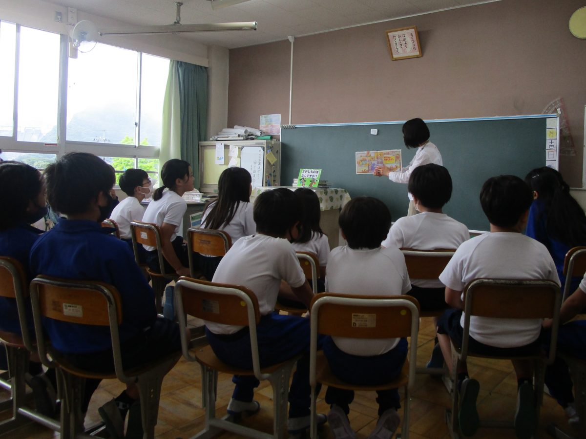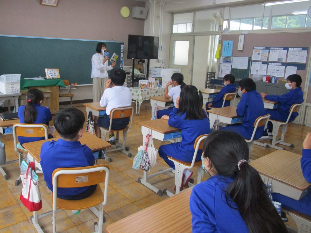 6月14日(水)、今日は市立図書館司書の方を招聘し、5・6年生にブックトークをしていただきました。5年生には「さがしものはなんですか?」をテーマに7冊の本を、6年生には「古いもの 新しいもの あれこれ」をテーマに7冊の本を紹介してもらいました。あじさい読書月間でたくさん読んでほしいです。