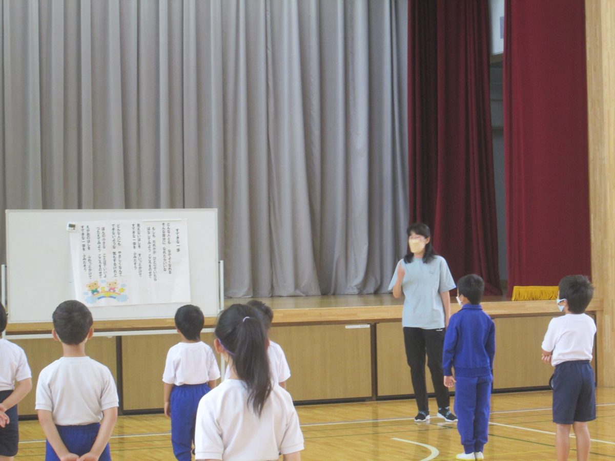 6月20日(火)、今日は音楽朝会を行いました。「すてきな一歩」の歌をみんなで声を合わせて歌いました。
