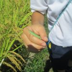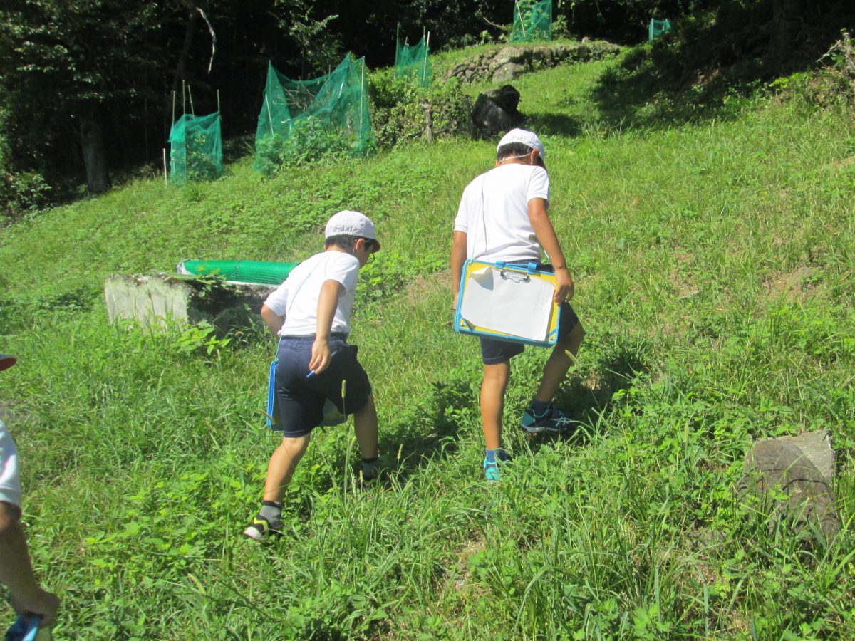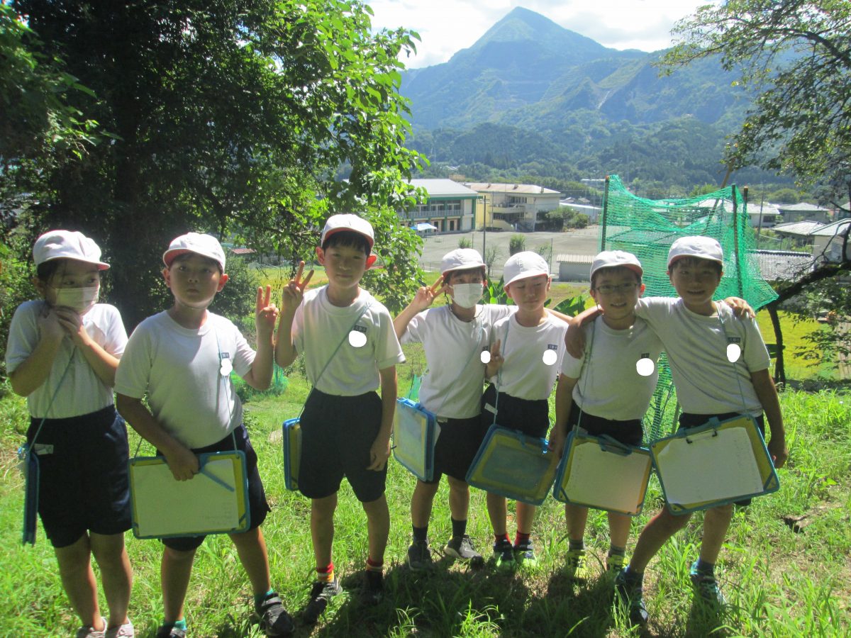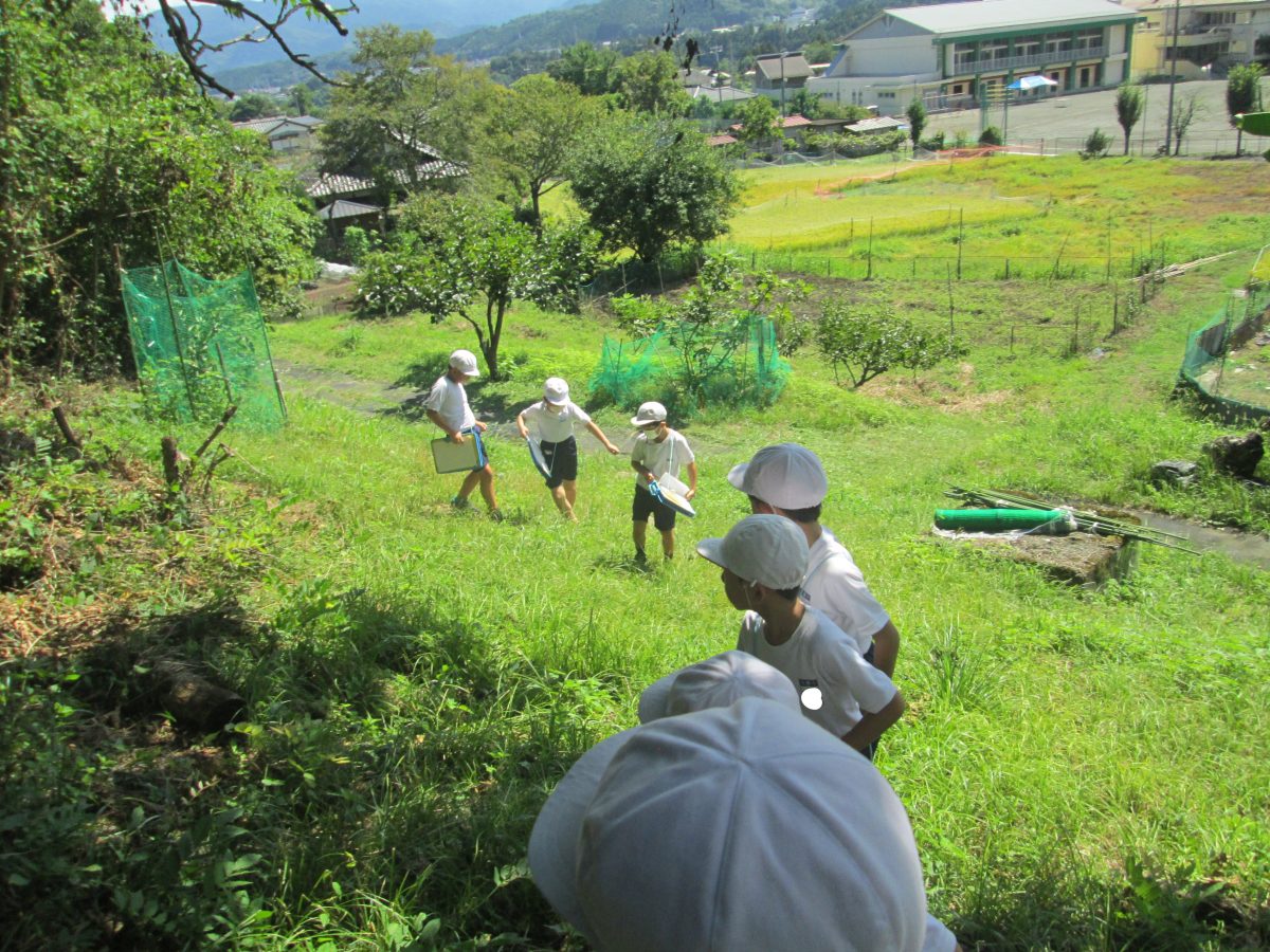 9月5日(火)、今日は3年生が果樹園で昆虫を探して、理科「昆虫のすみか」の学習をしました。果樹園に行くまでにもたくさんの昆虫を見つけました。久那小学校の果樹園は、たくさんの昆虫のすみかになっていることがわかったようです。