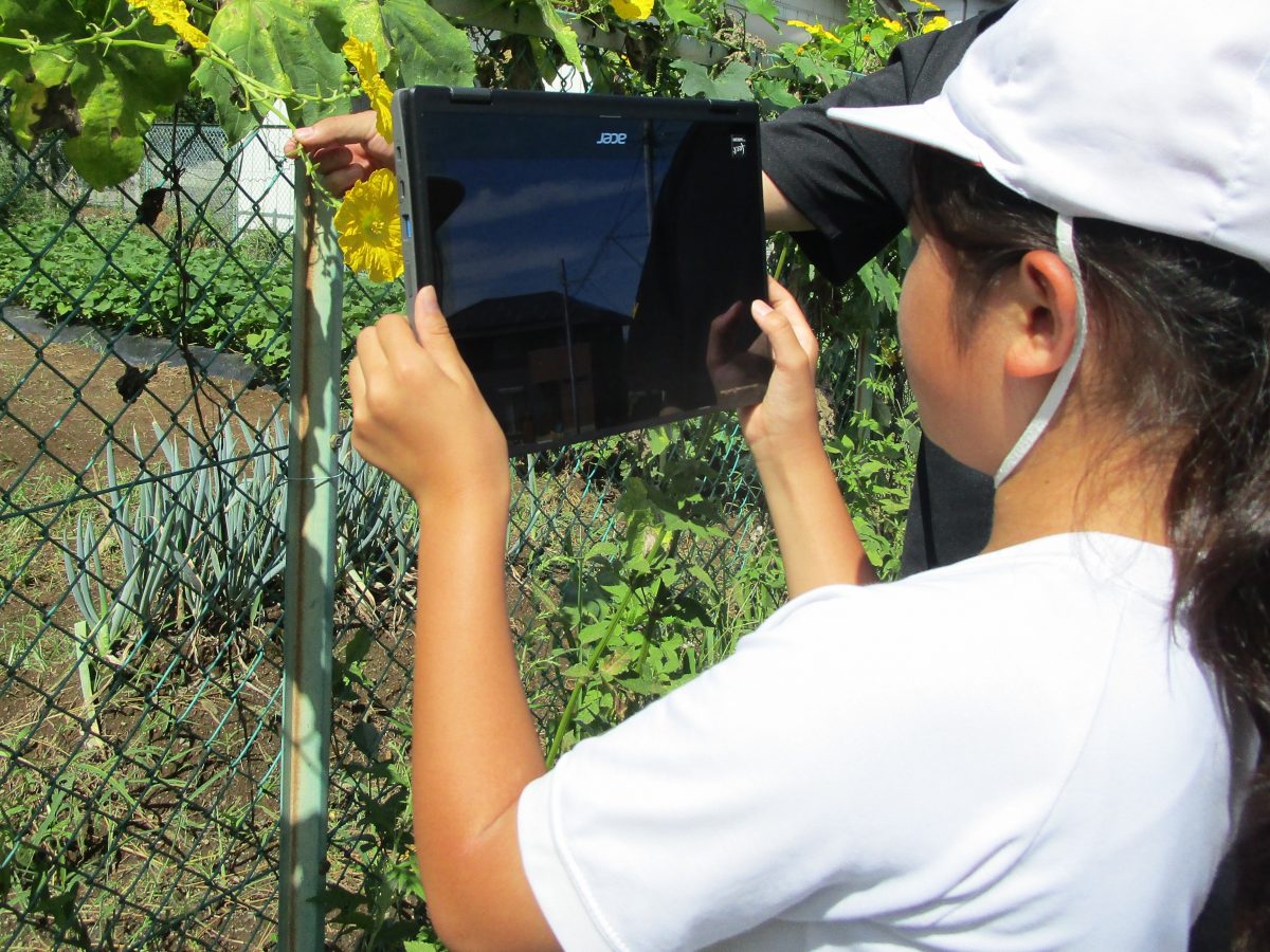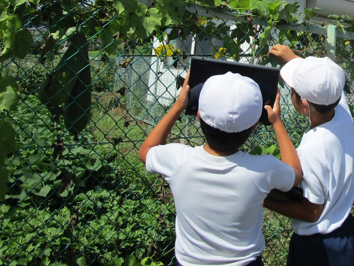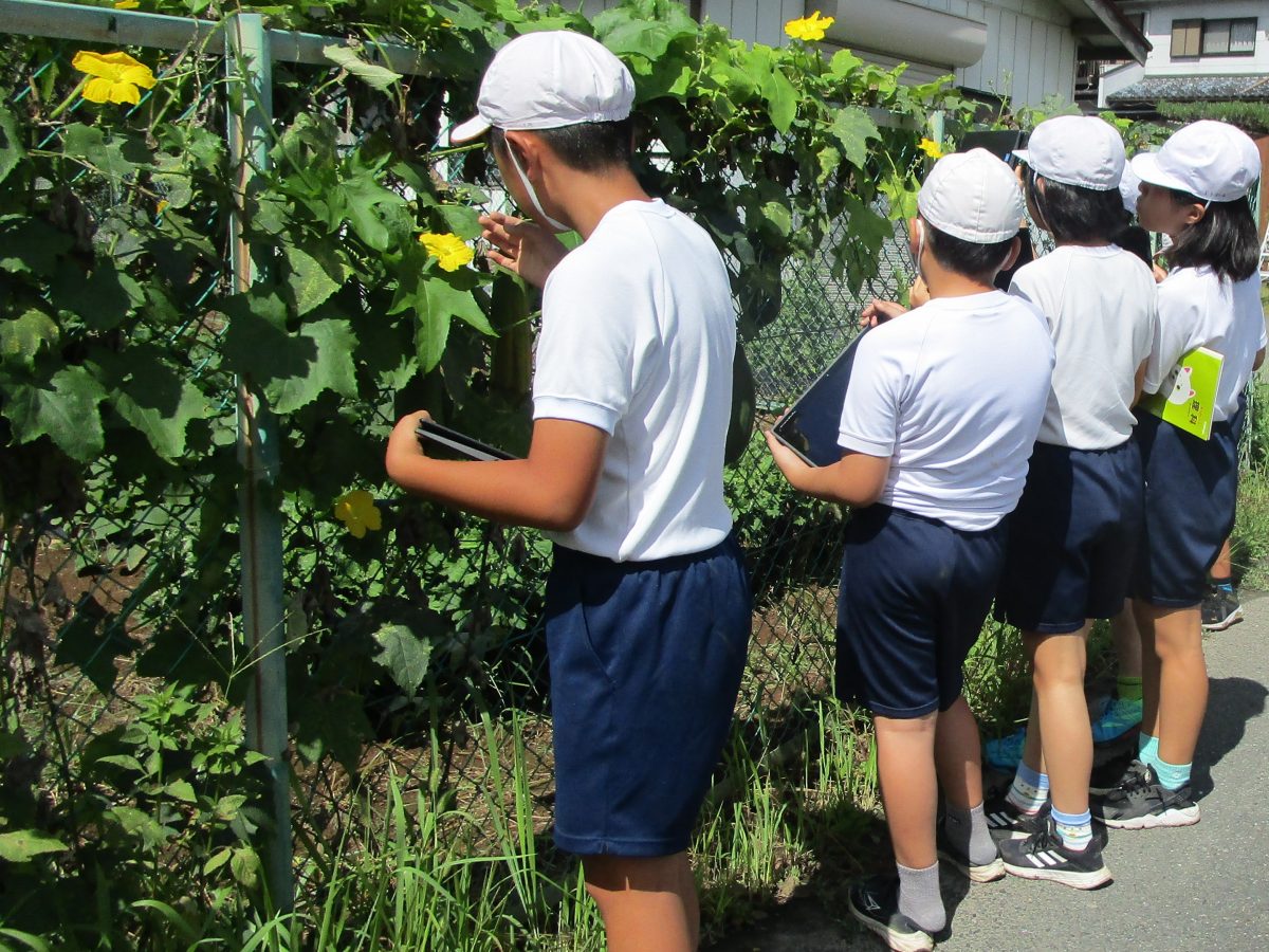 9月7日(木)、4年生は理科「月の見え方」、5年生は理科「花のつくり」でヘチマの観察をしました。4年生は時刻をずらして月を観察して、月の位置の違いを確認しました。5年生は農園のヘチマの花を観察して、雄花と雌花の違いを確認しました。理科の授業での観察の大切さがわかったようです。