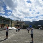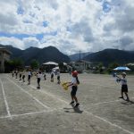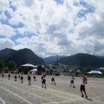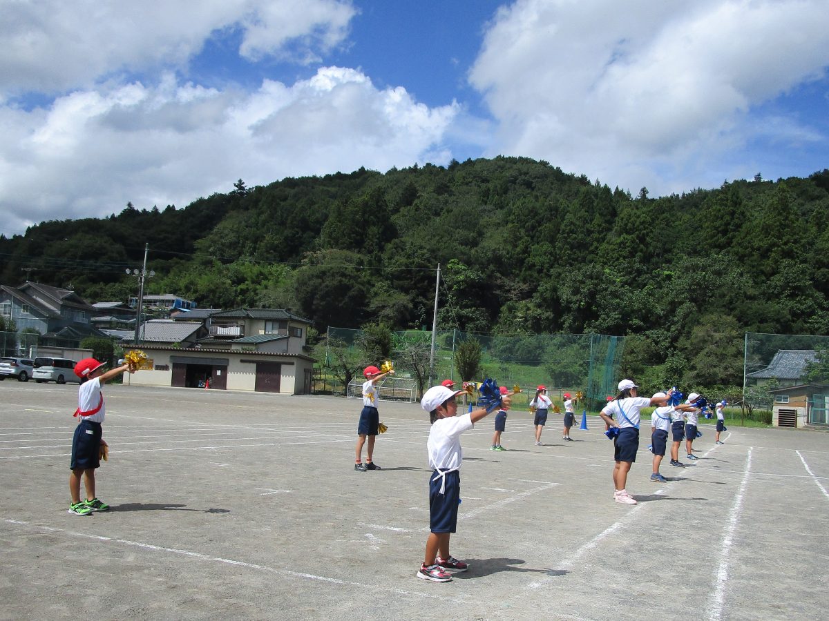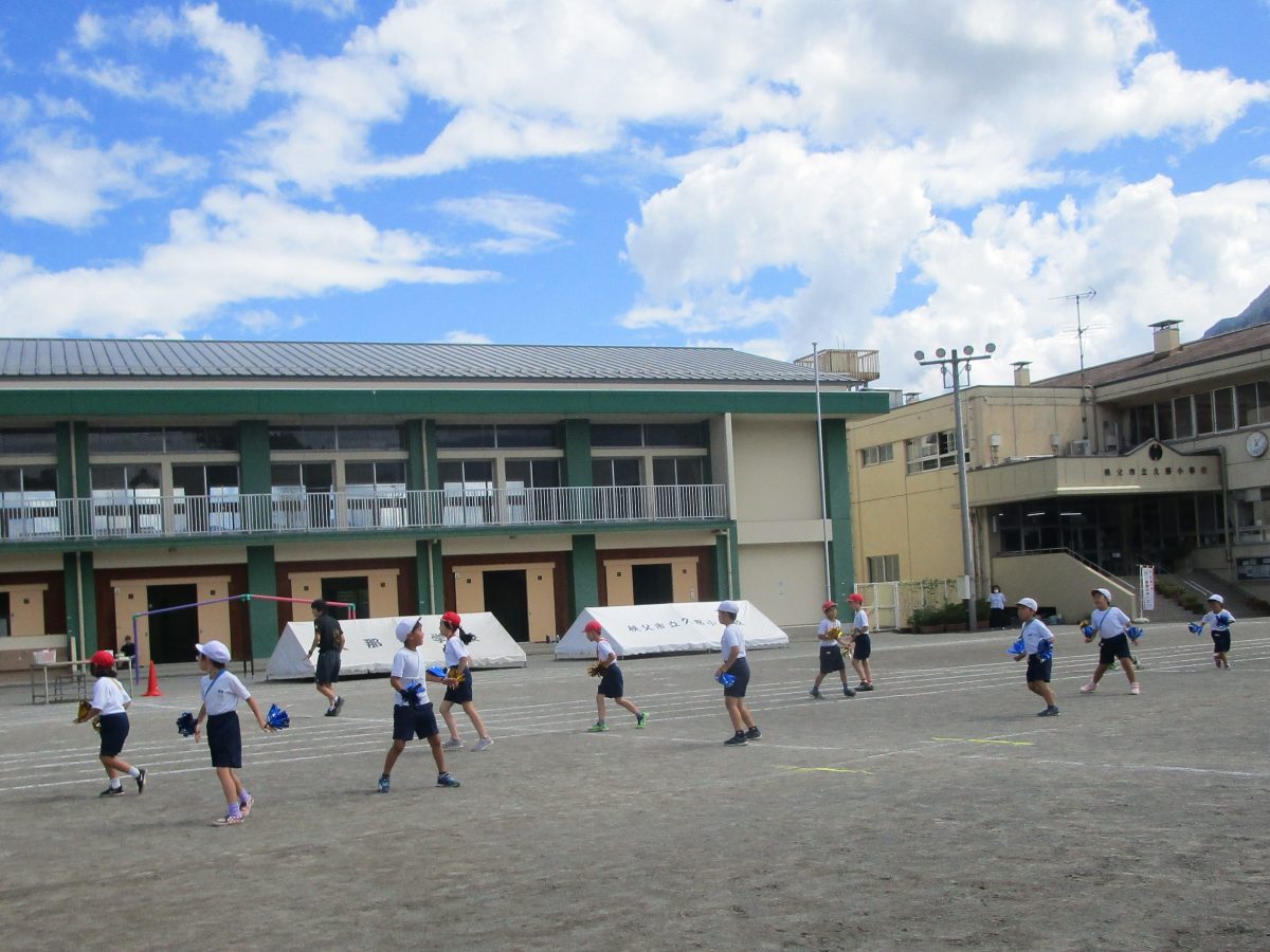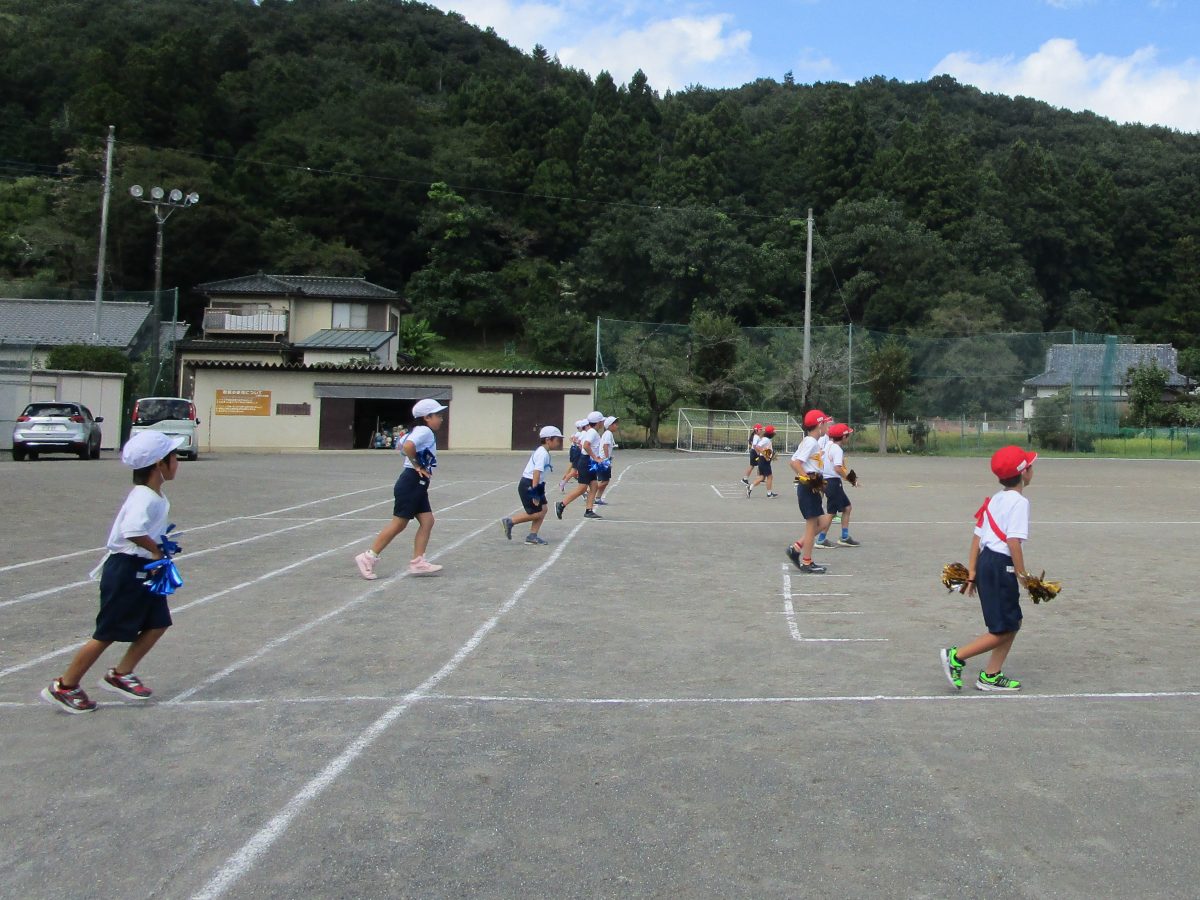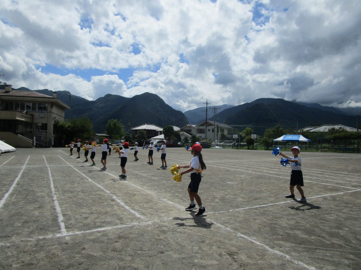 9月12日(火)、今日は1~3年生が校庭でポンポンを付けて表現・ダンスの練習を行いました。日が差すと、スポットライトがアイドルを照らすように見えます。「久那小にサチアレ!14人のアイドル♡」は9月16日(土)11:05演技予定です。