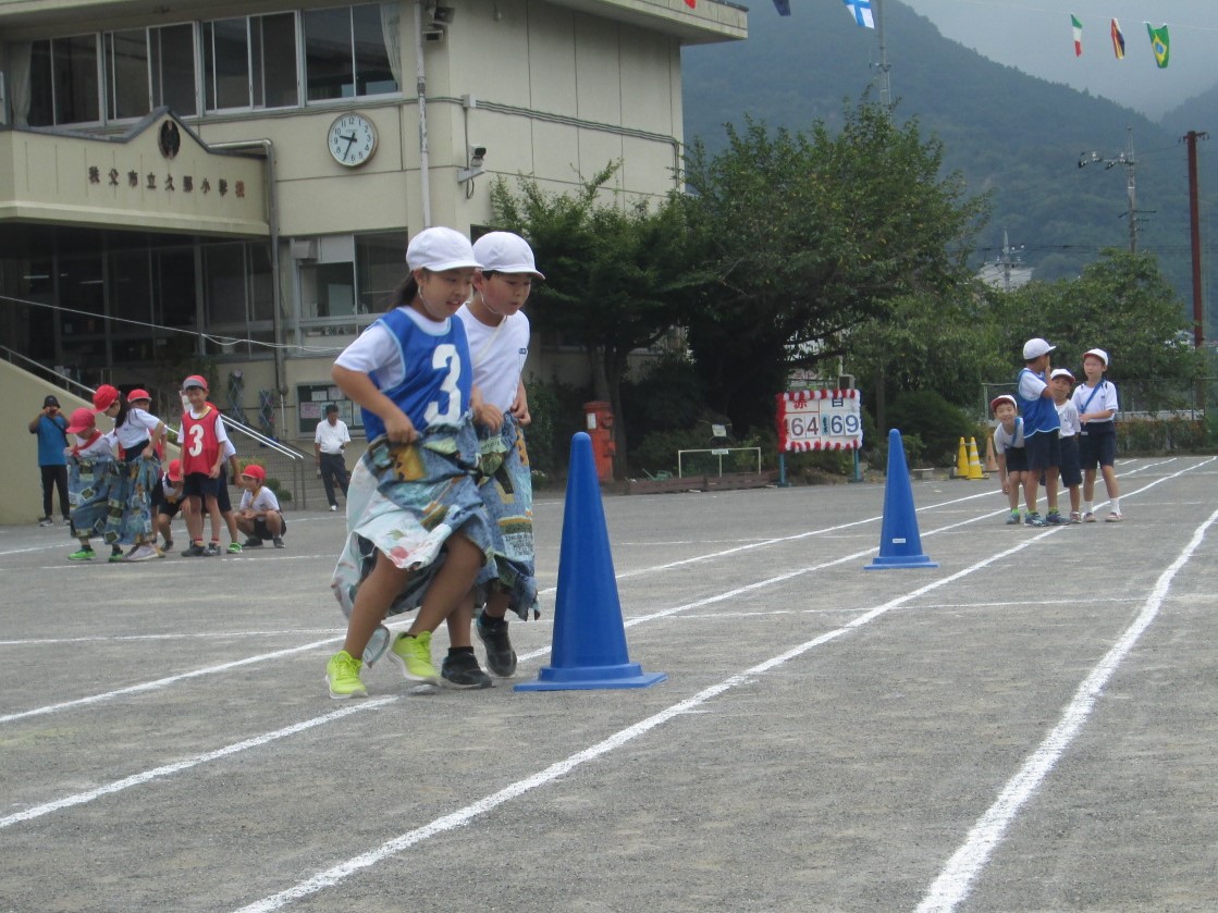 9月21日(木)、今日は運動会を開催しました。1~3年生の団体競技、4~6年生の団体演技の様子です。1~3年生の団体競技では心を1つにしてペアで走りました。4~6年生の団体演技では力強さを感じる体の使い方を見事に披露することができ、見ている人に感動を与えてくれました。