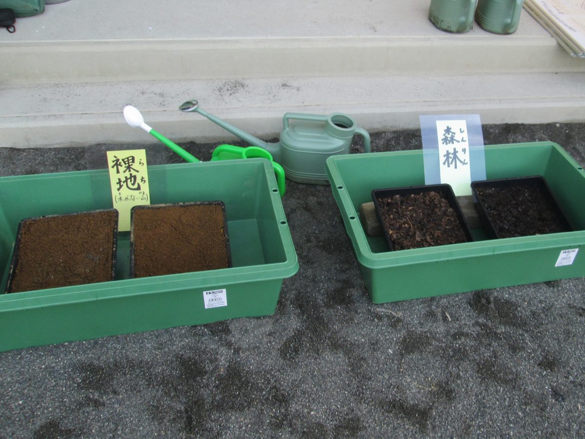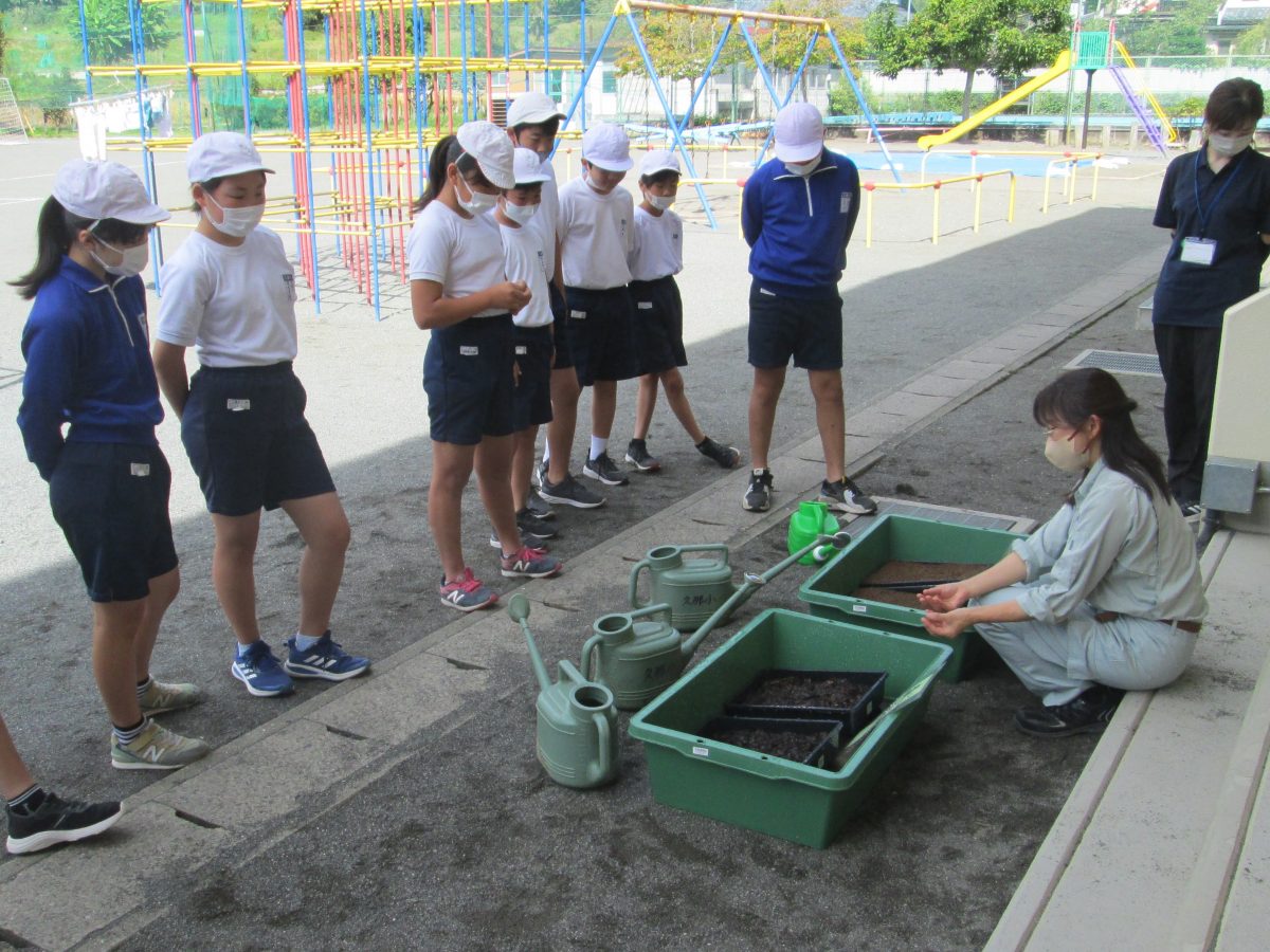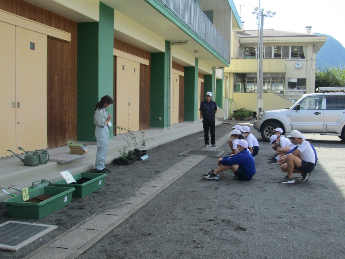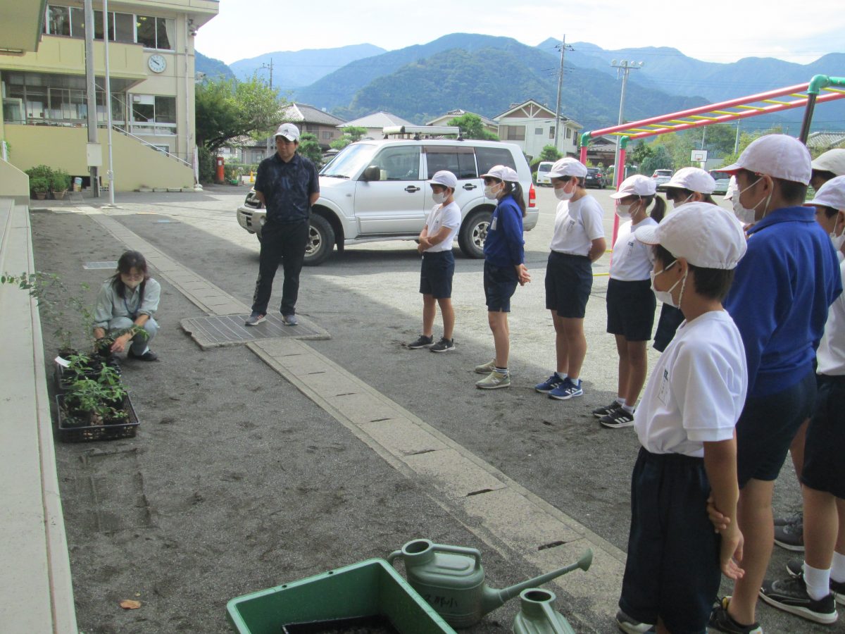 9月25日(月)、今日は6年生が農林振興センターの方を招聘して苗木のスクールステイを実施しました。裸地(木がない山)の土と森林の土を比べてみたり、森林の働きについて学習したりできました。農林振興センターの皆様、ありがとうございました。