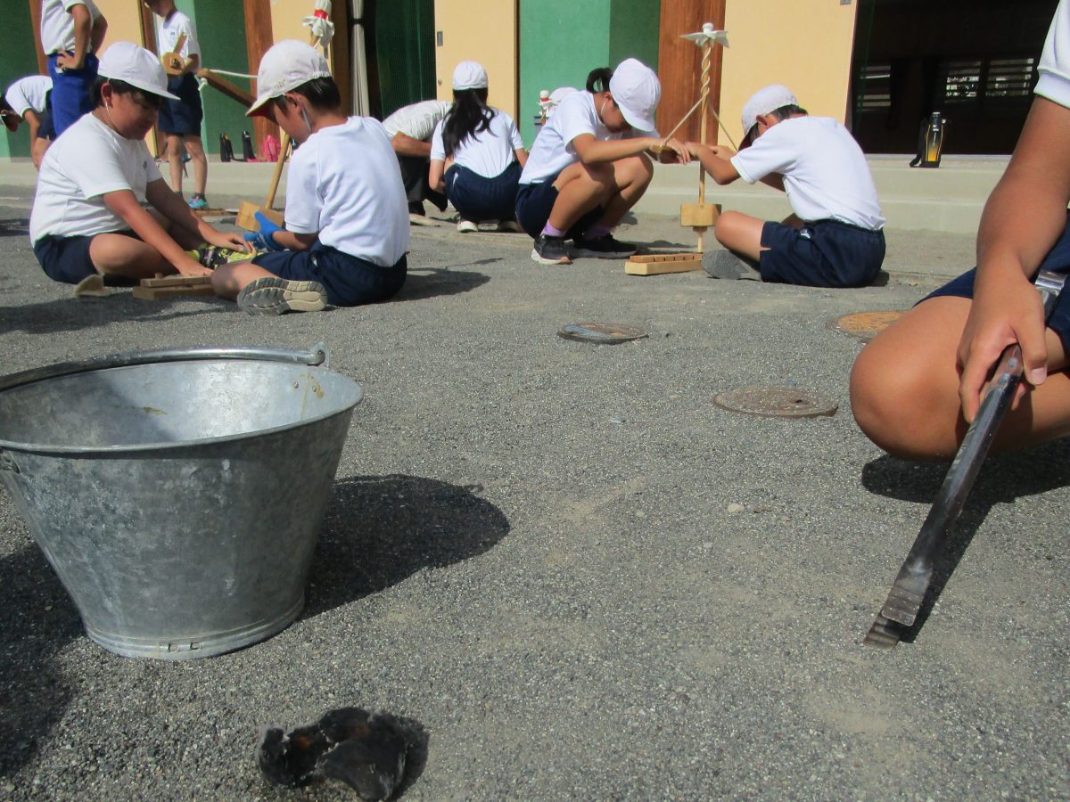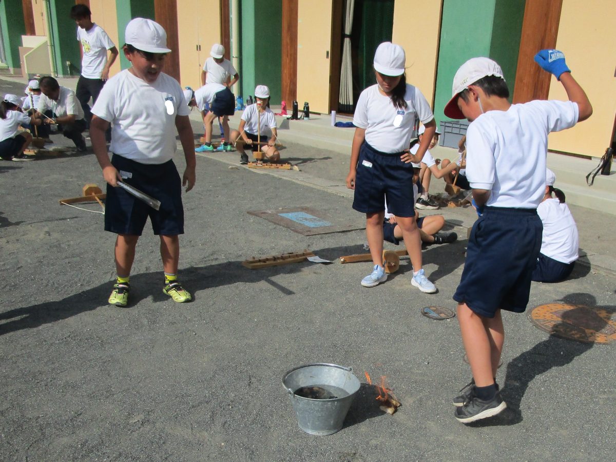 9月27日(水)、今日は埼玉県埋蔵文化財調査事業団の方を招聘し、5年生が火起こし体験を行いました。レクチャーをしてもらい、2人組で道具を使って頑張り、すべての2人組で火を起こすことができました。これは、珍しいことらしいです!埼玉県埋蔵文化財調査事業団の皆様、ありがとうございました。