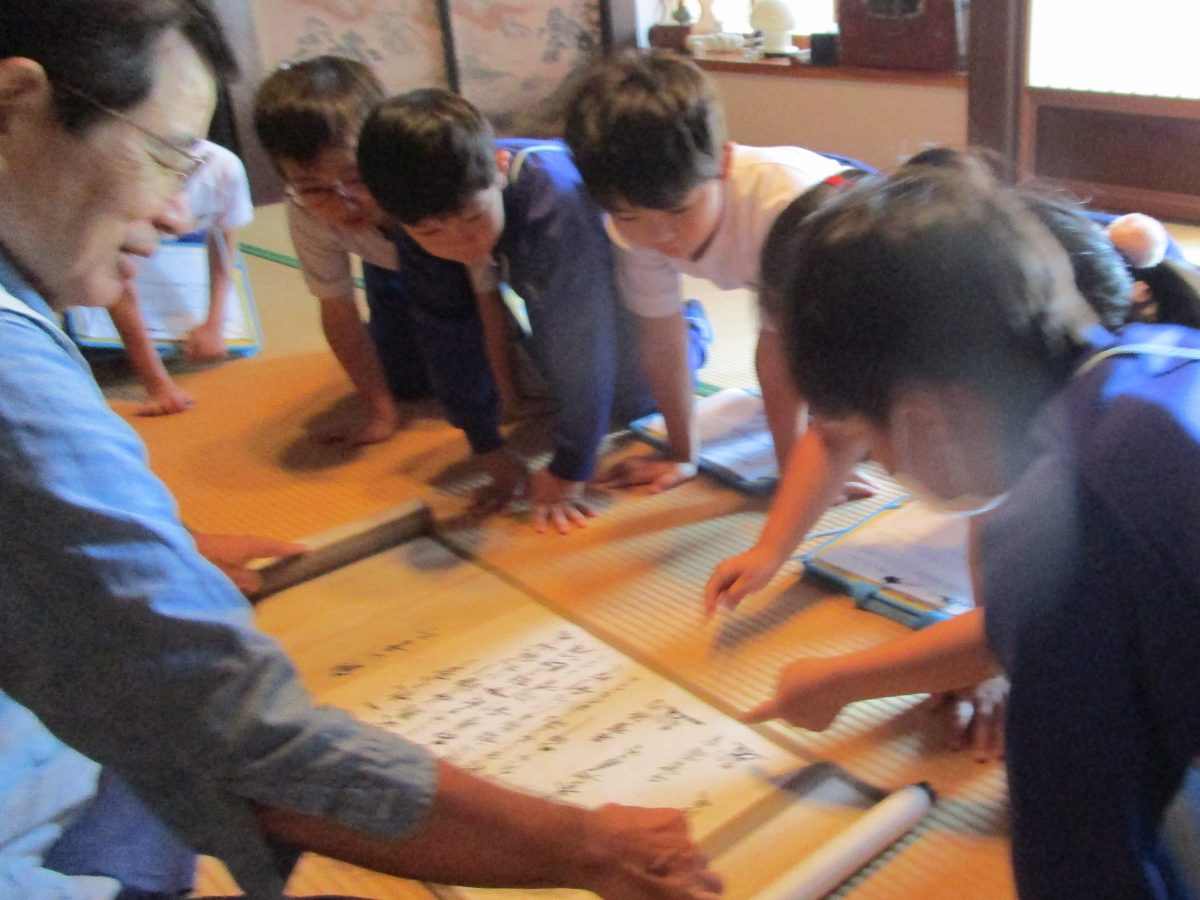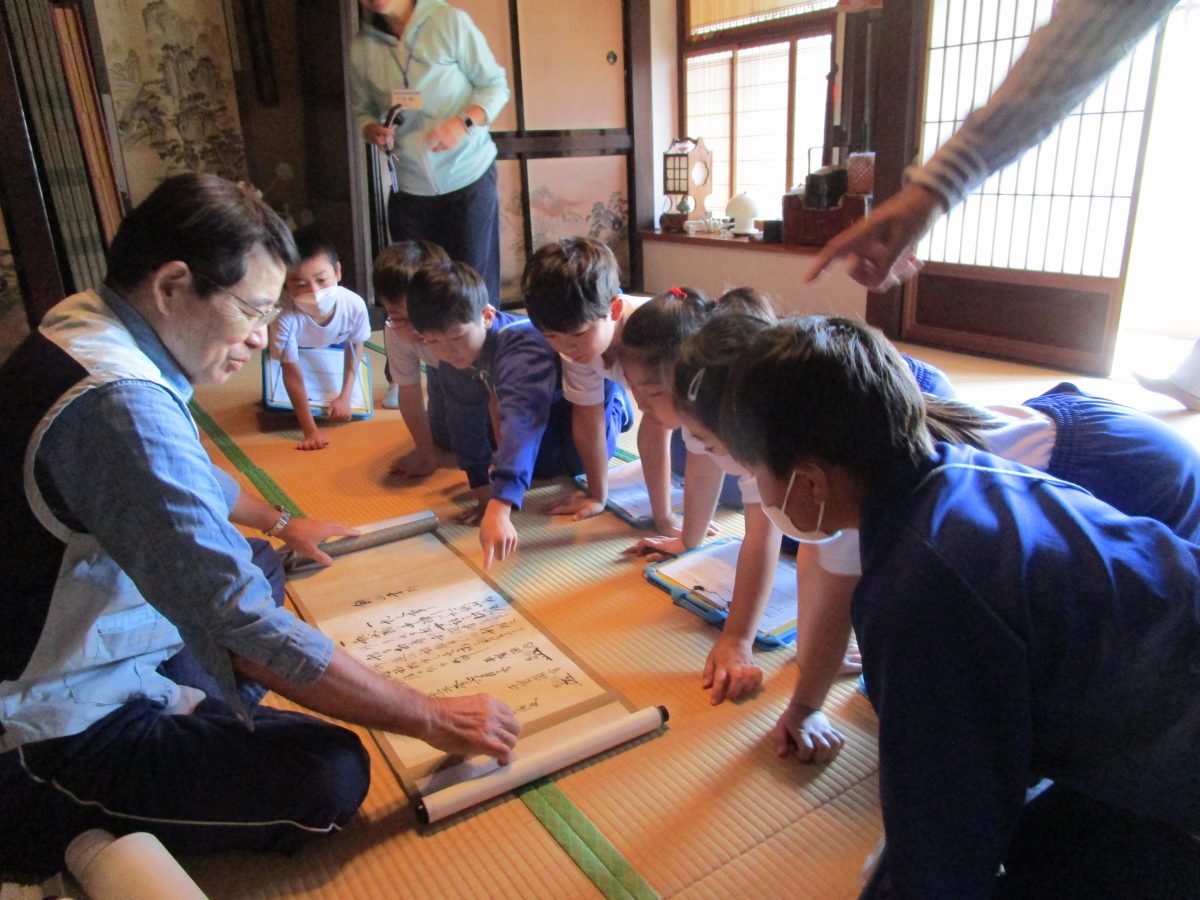 10月6日(金)、今日はあ3年生が総合的な学習の時間で江戸中期の偉人平賀源内が立ち寄ったとされるお宅で縁のある品を拝見させていただきました。平賀源内の古文書や古地図を拝見し、子どもたちも興味津々でした。250年以上前の物があると考えるとその歴史の重みを感じます。学校応援団の皆様、ありがとうございました!
