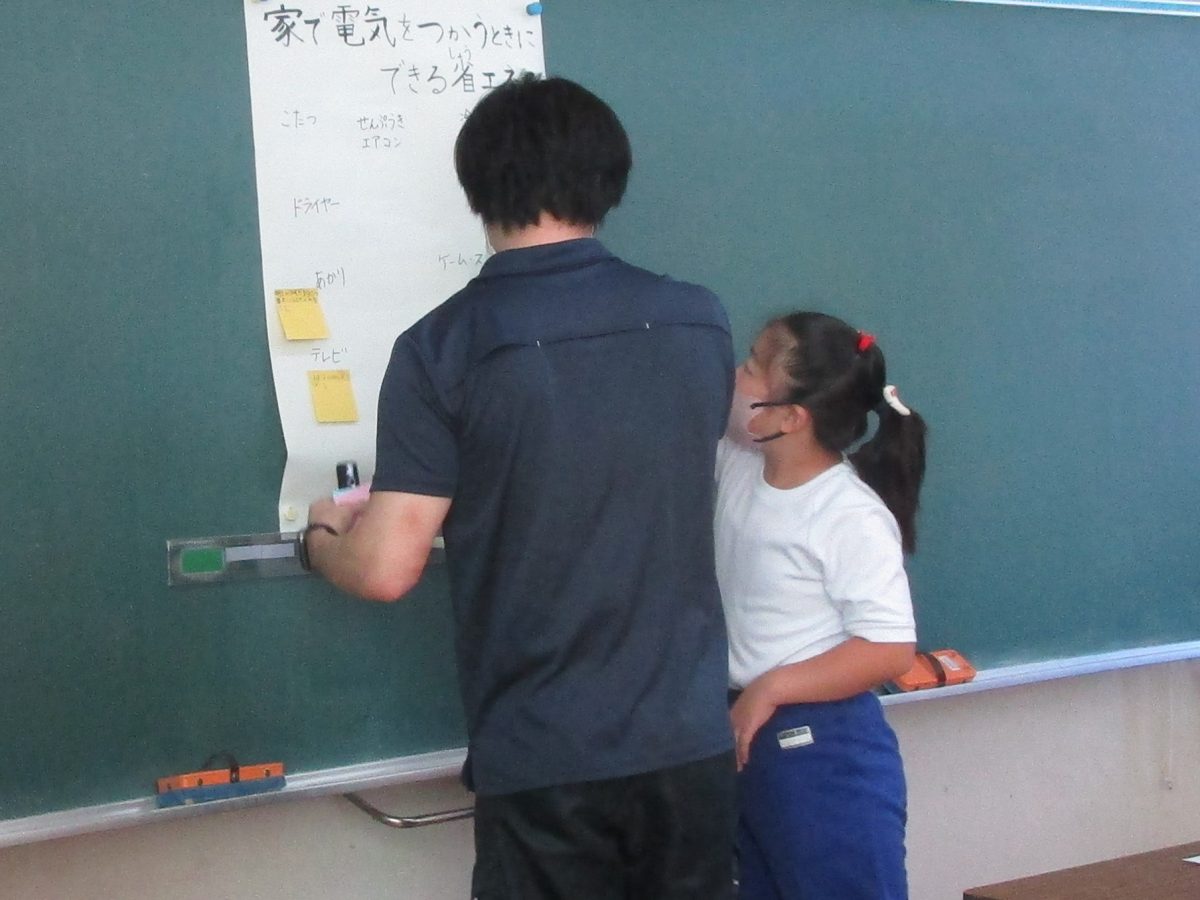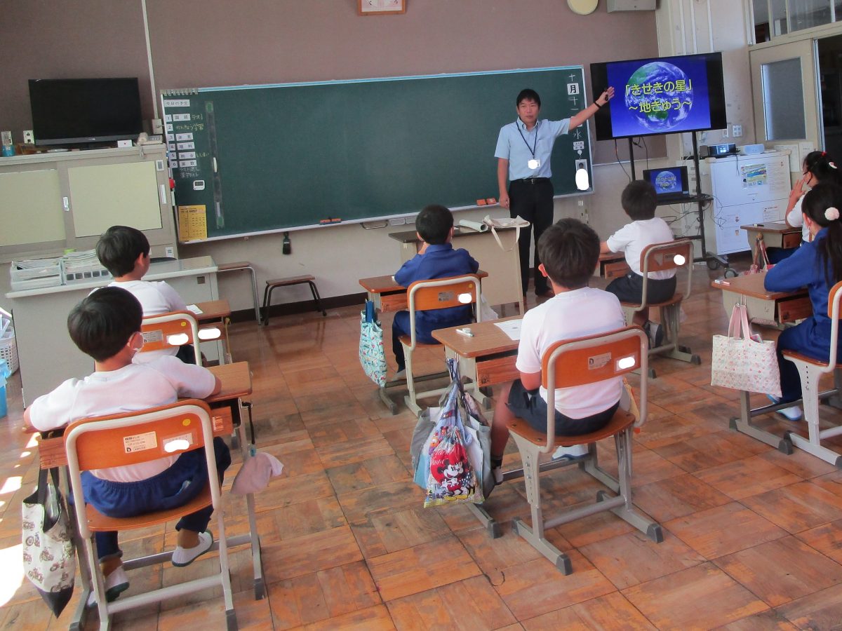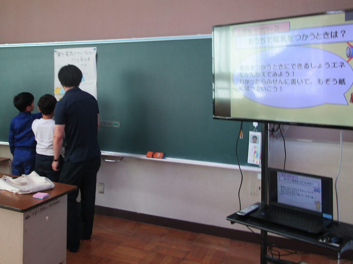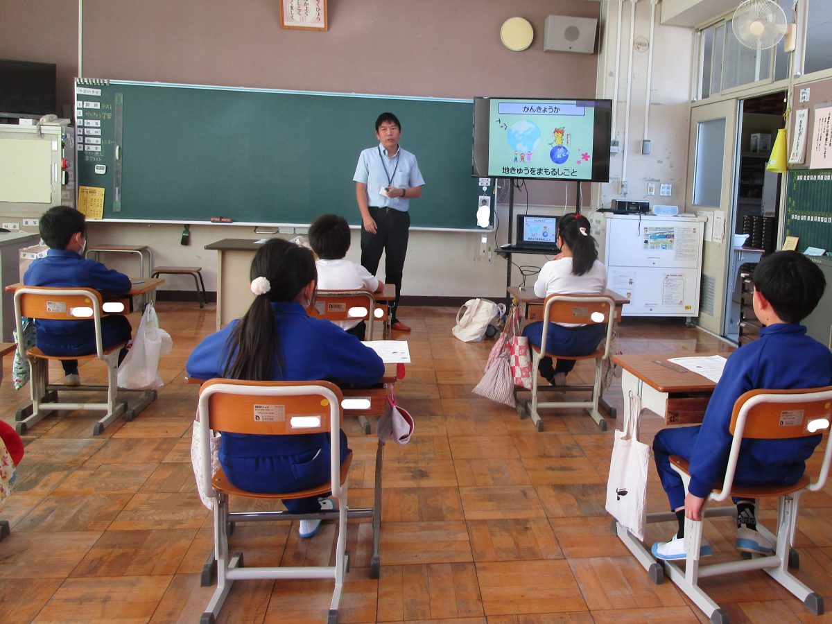 10月11日(水)、今日は秩父市環境部環境課の方を招聘し、3年生が環境学習を実施しました。アイスブレイクをして場を和ませて子どもたちからの意見を出しやすくしたり、スライドを使用してわかりやすい資料提示で地球環境の変化を教えていただいたりしました。身近でできる省エネについても考えることができました。環境課の皆様、ありがとうございました!