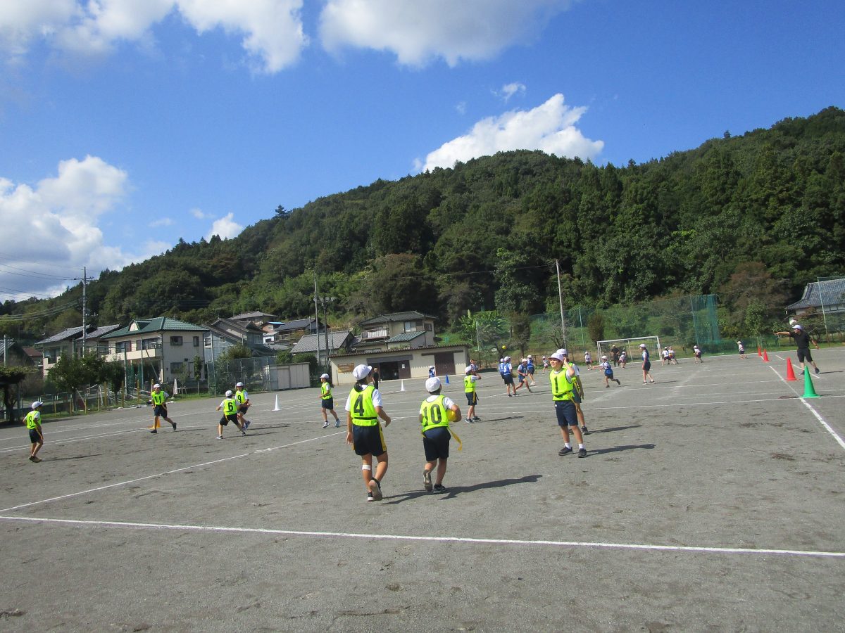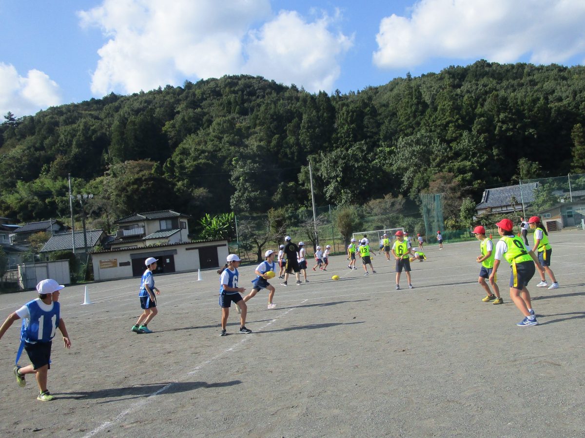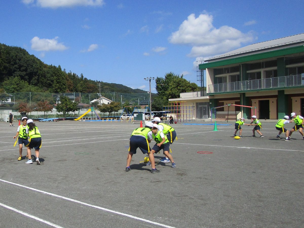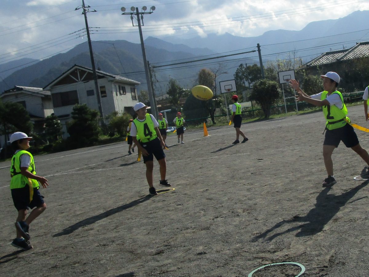 10月12日(木)、今日は5・6年生がタグラグビーを実施しました。ラグビーは前にパスを出すことができないので戸惑っていたようですが、ルールを少しずつ理解できてきたようです。まだタグラグビーを始めたばかりですが、作戦を考え、これからますます上手になっていく予感がします。