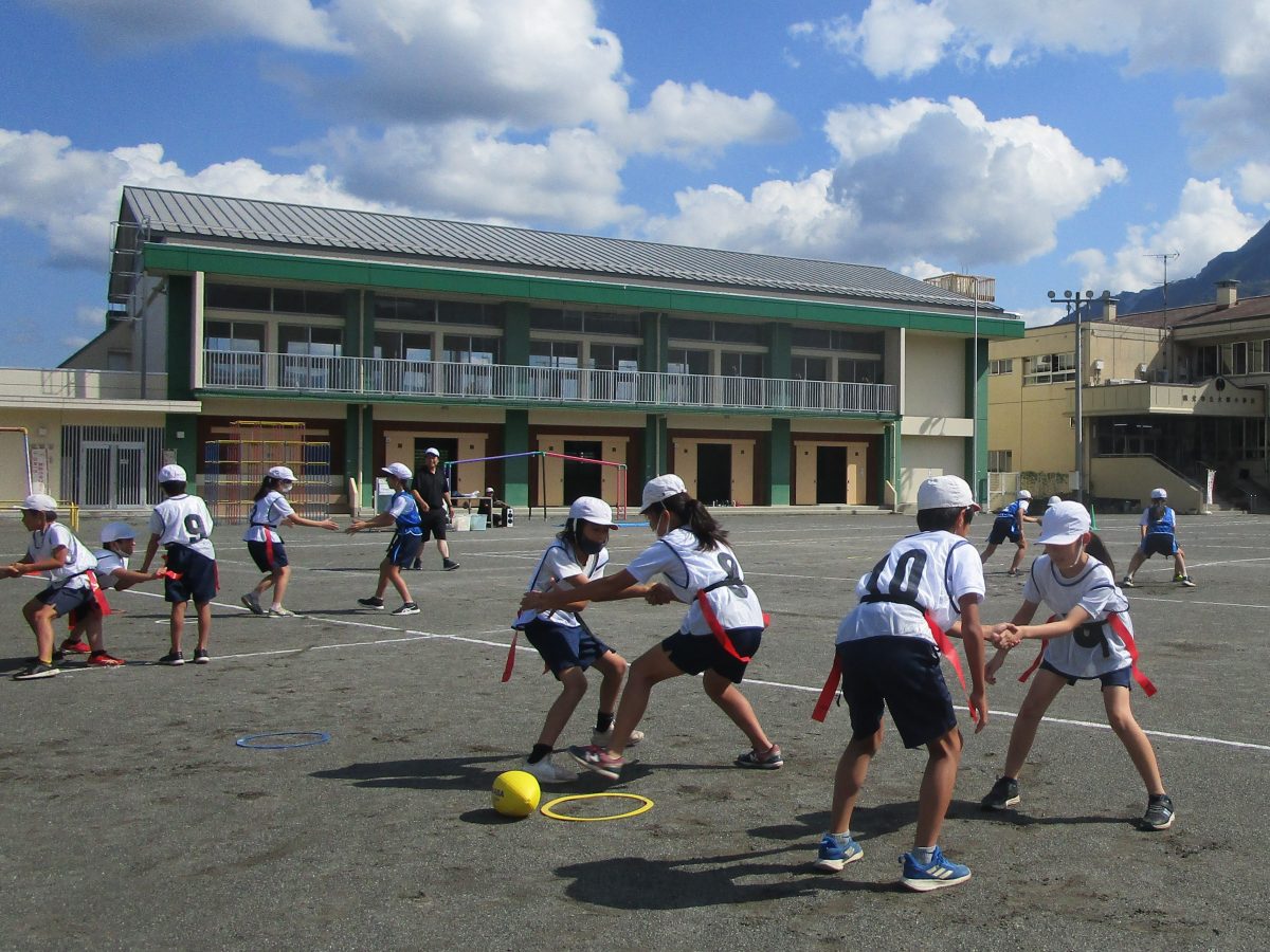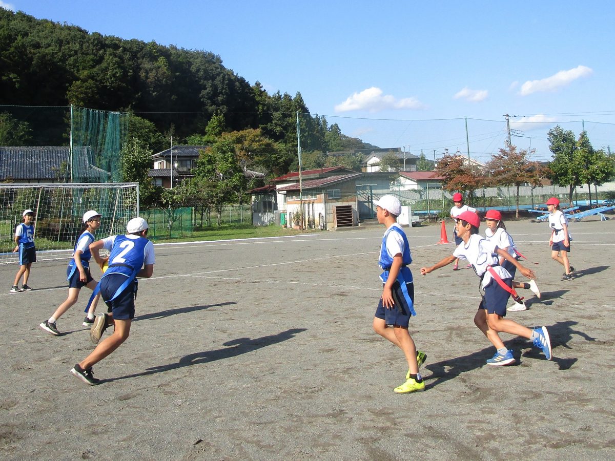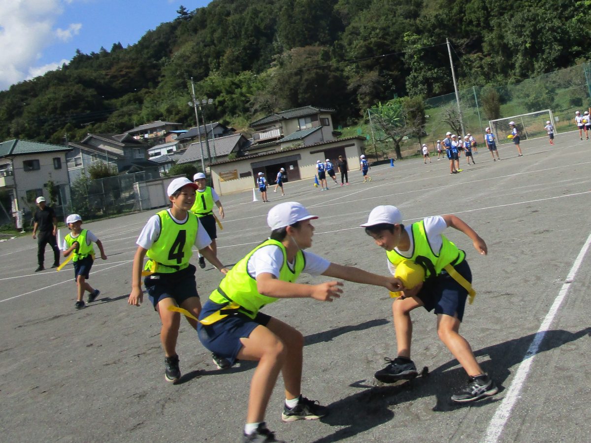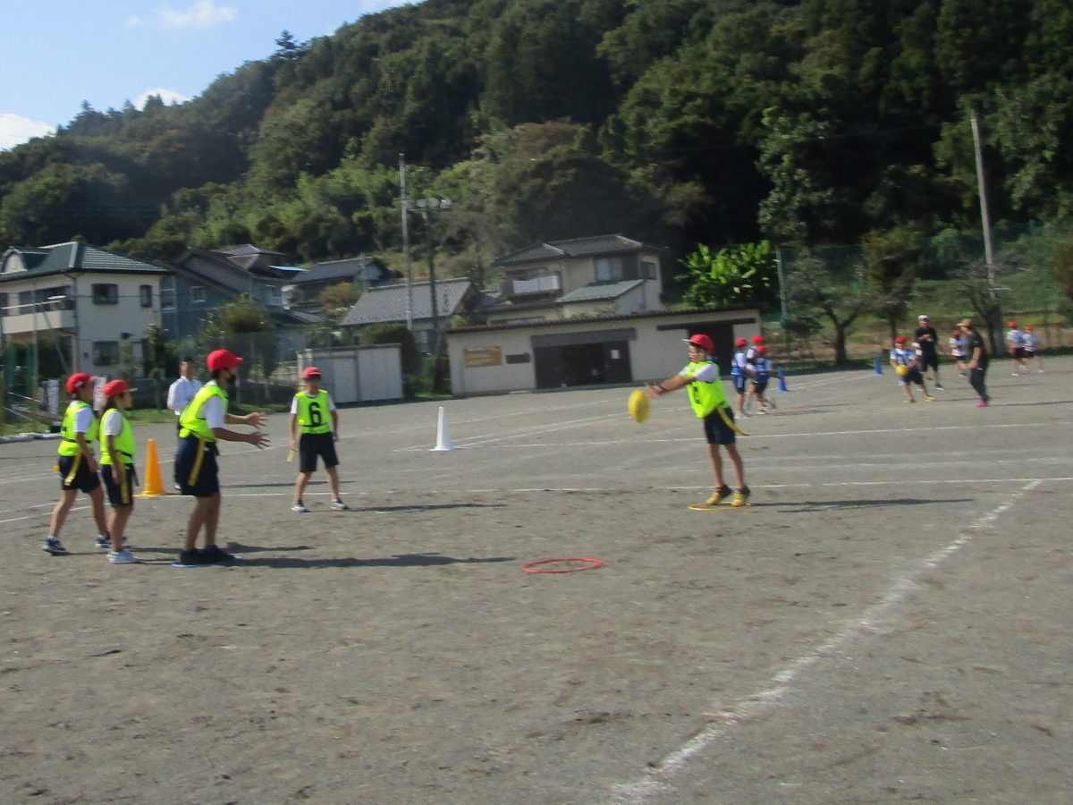 10月12日(木)、今日は5・6年生がタグラグビーを実施しました。ラグビーは前にパスを出すことができないので戸惑っていたようですが、ルールを少しずつ理解できてきたようです。まだタグラグビーを始めたばかりですが、作戦を考え、これからますます上手になっていく予感がします。