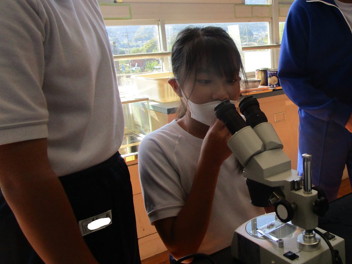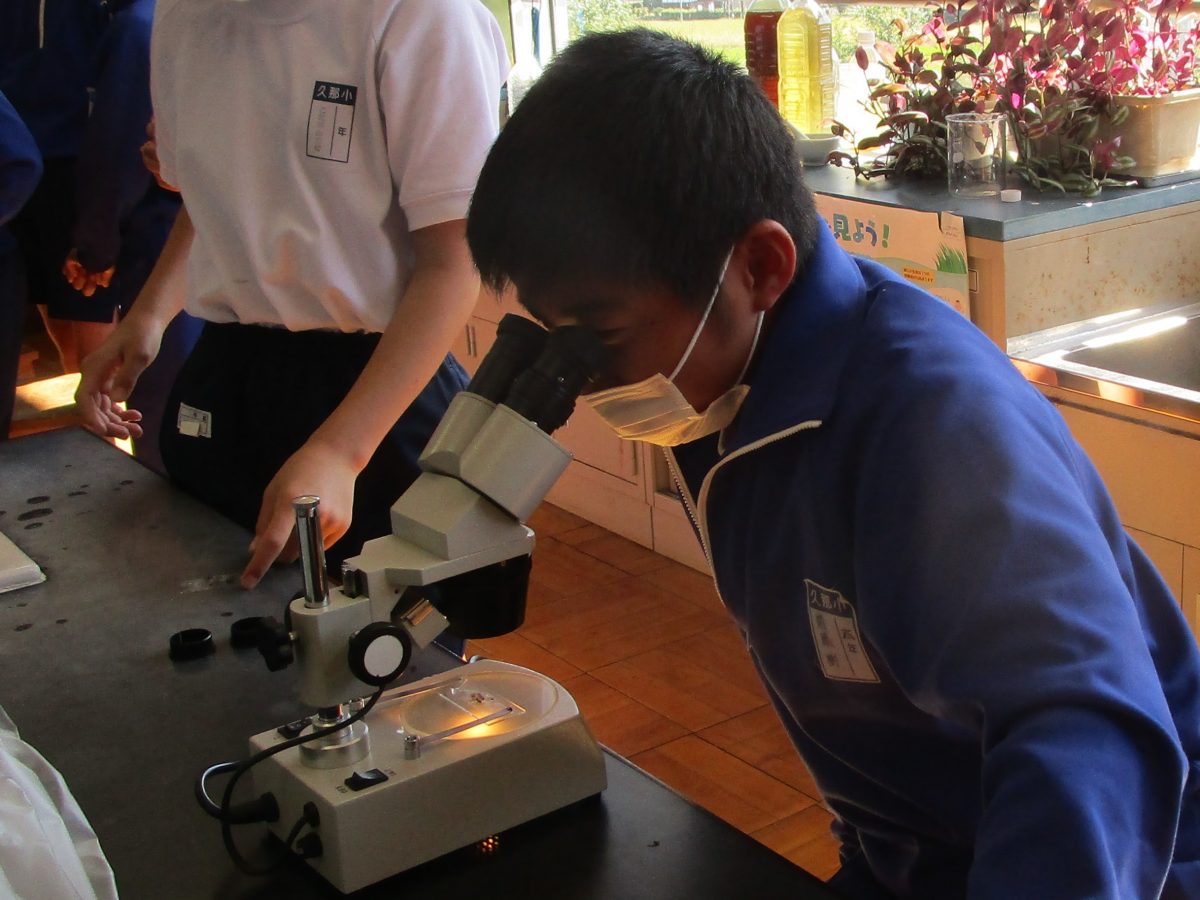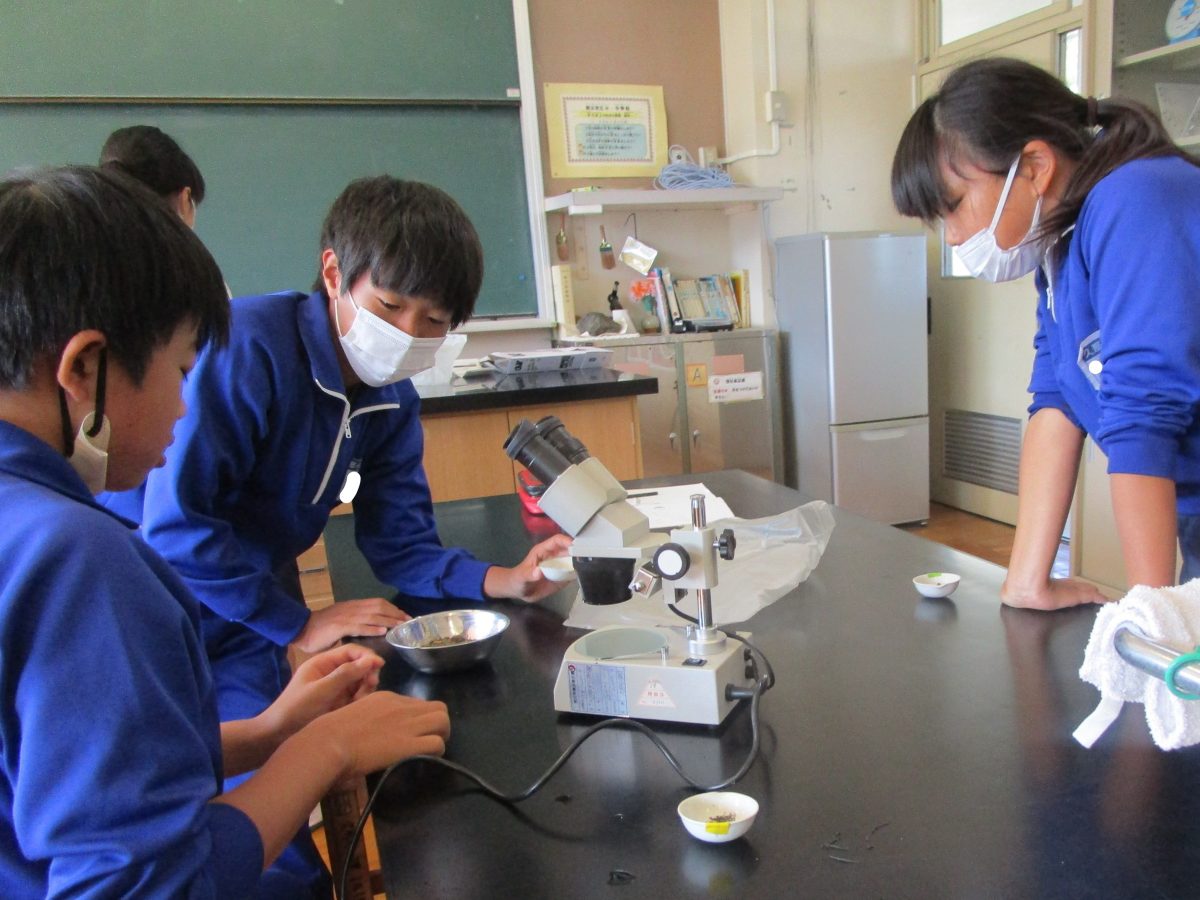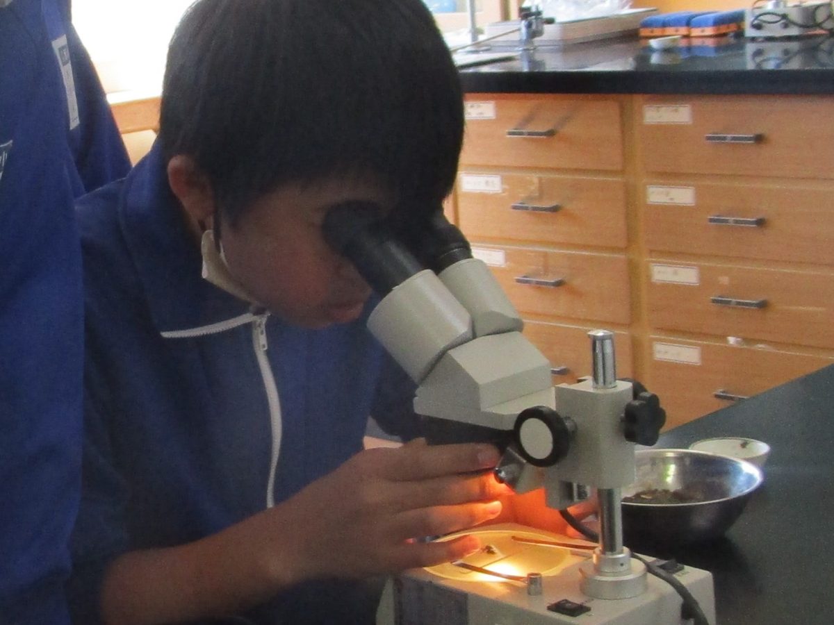 10月13日(金)、今日は6年生が理科室で電子顕微鏡を使用して校庭の砂の成分を観察しました。校庭の砂を丁寧に洗い、残った成分を電子顕微鏡で見ました。同じような粒でしたが、様々な種類の粒を見ることができ、これから考察して学習を深めていきます。