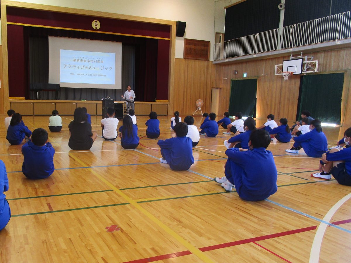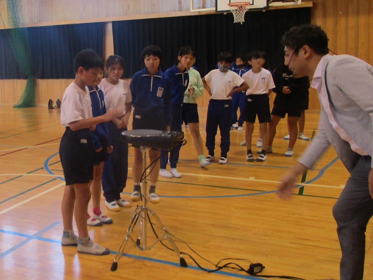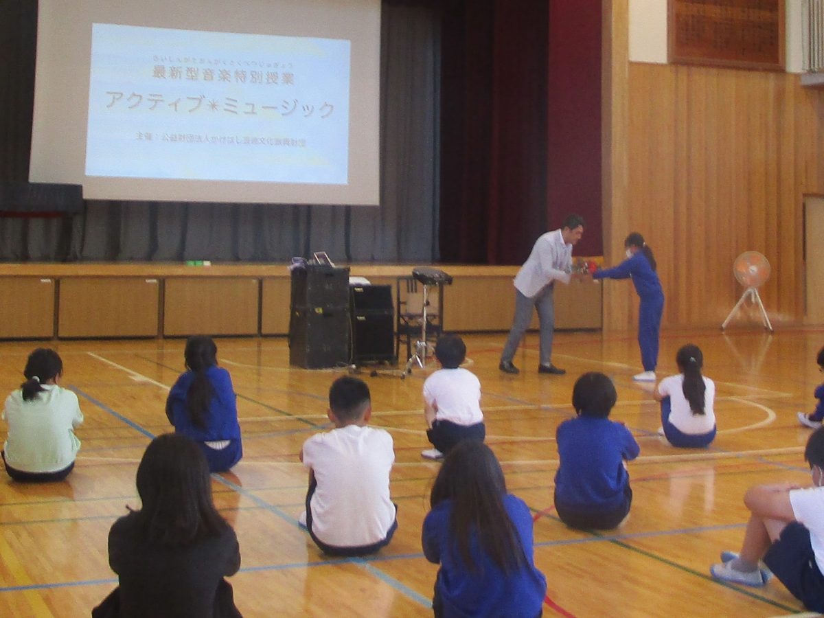 10月18日(水)、今日は公益財団法人かけはし芸術文化振興財団様による最新型音楽特別授業を実施しました。講師はミュージシャンで音楽教育家のマサキング氏です。ボディパーカッションや電子楽器体験などを行い、盛り上がりました。楽しい時間をありがとうございました!