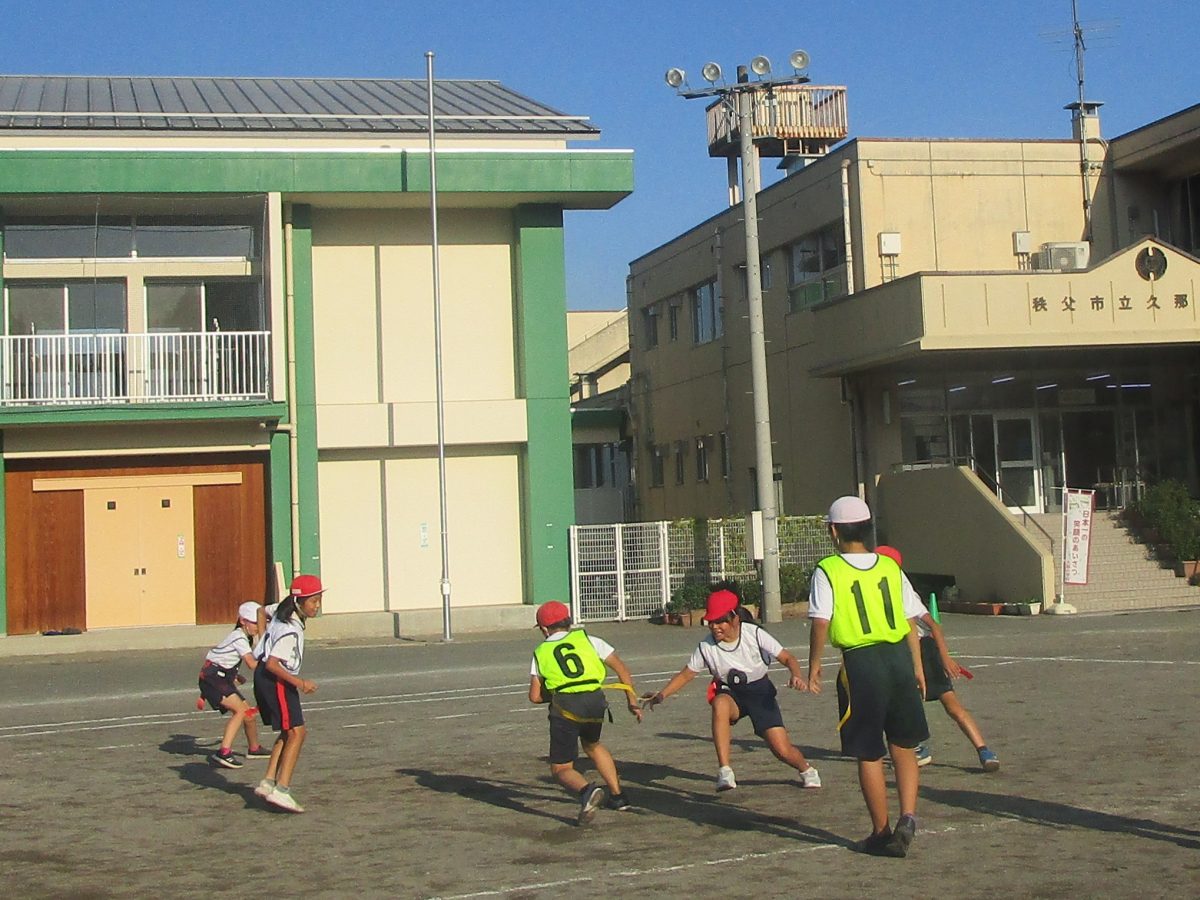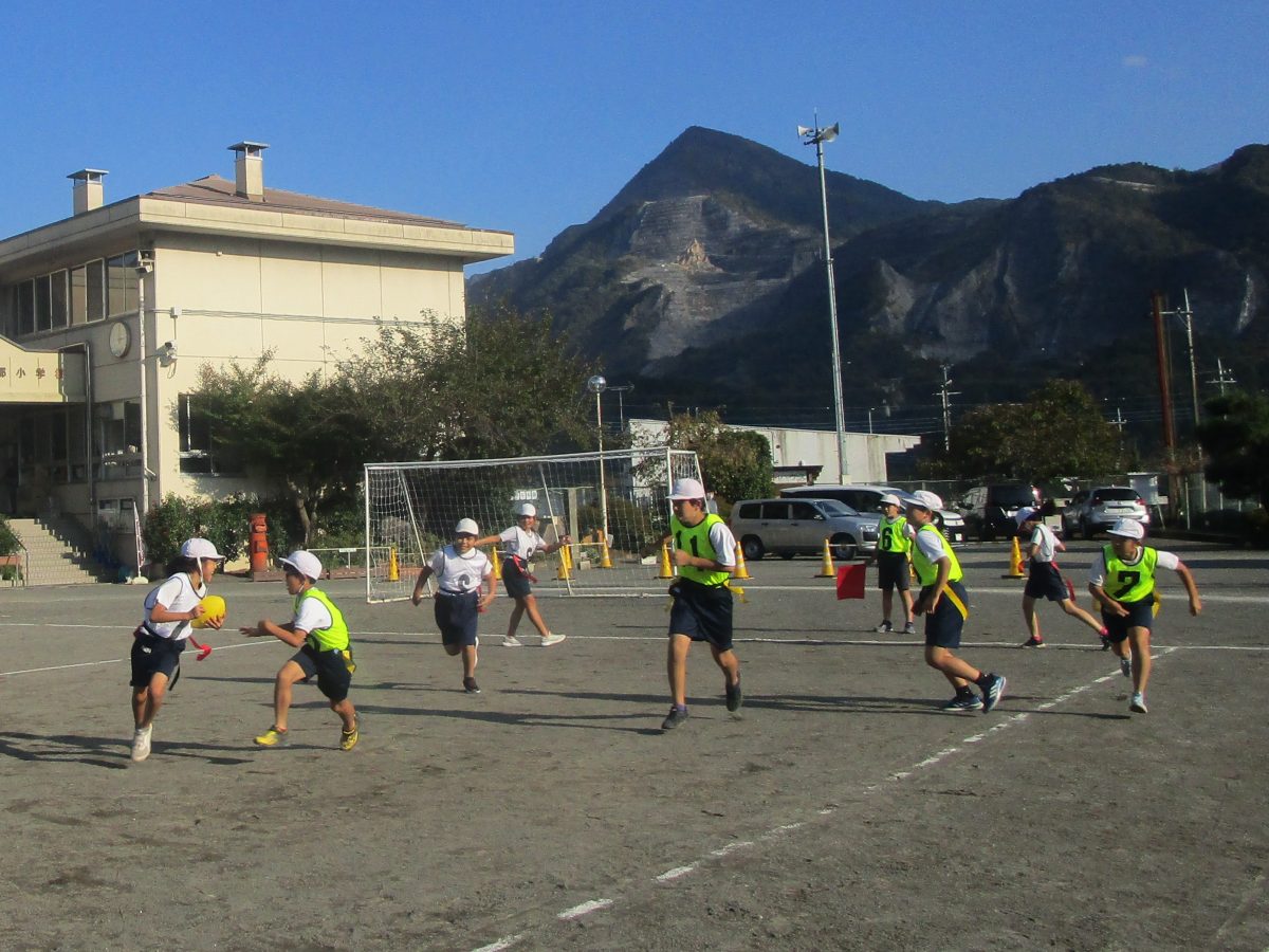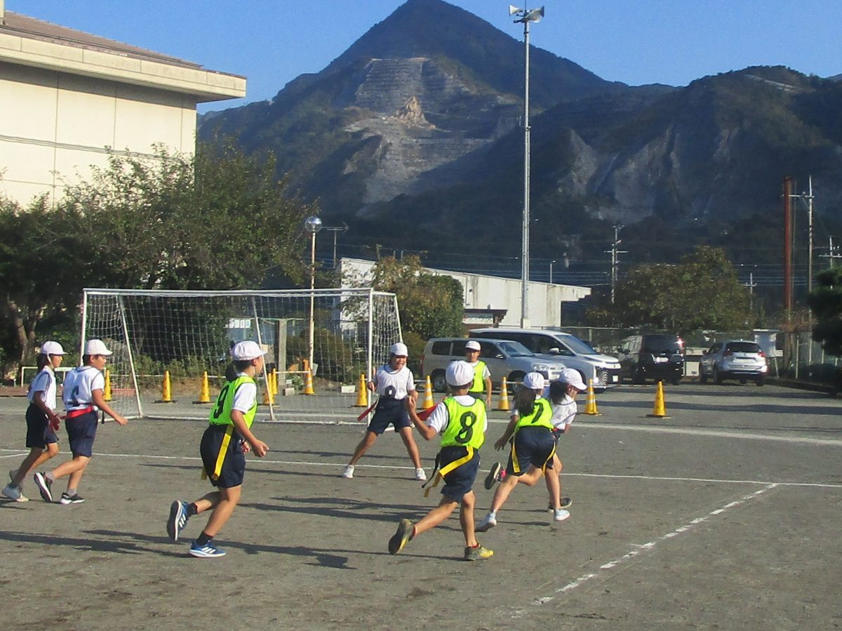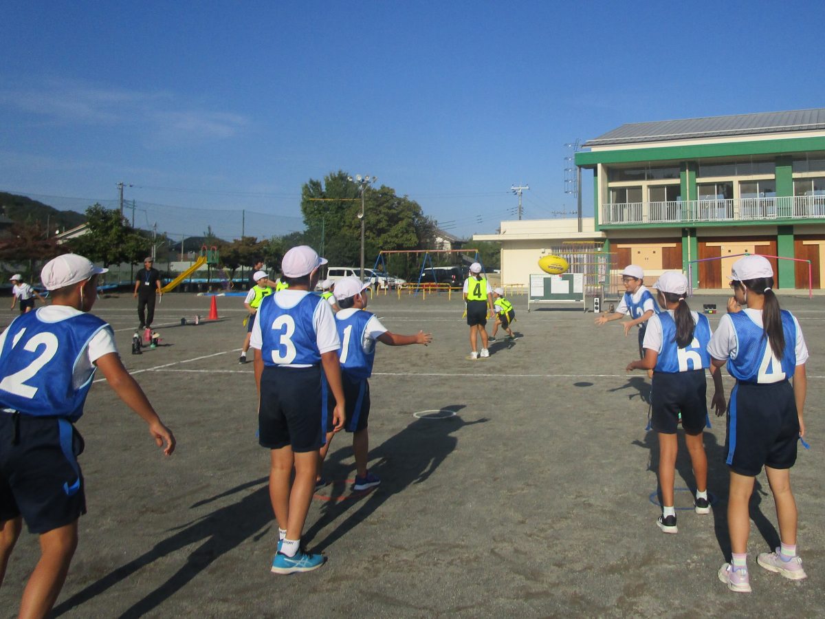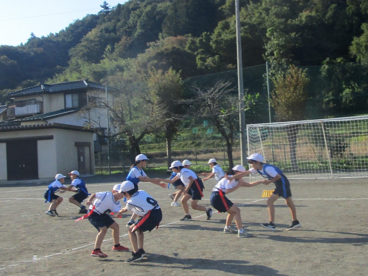 10月18日(水)、今日の5・6年生の体育授業は「One for all!タグラグビー(ボール運動ゴール型)」を行いました。回を重ねる度にラグビーさとチームワークが増しています。