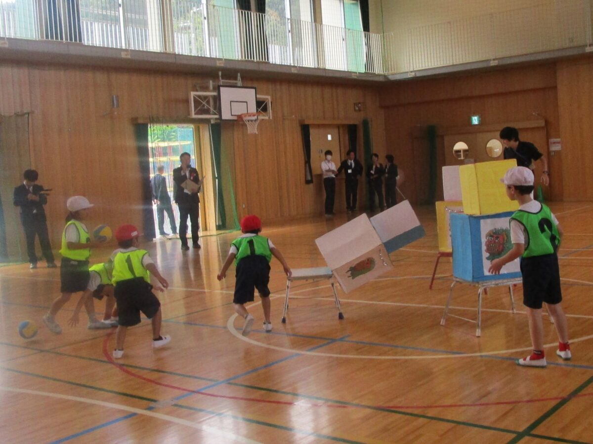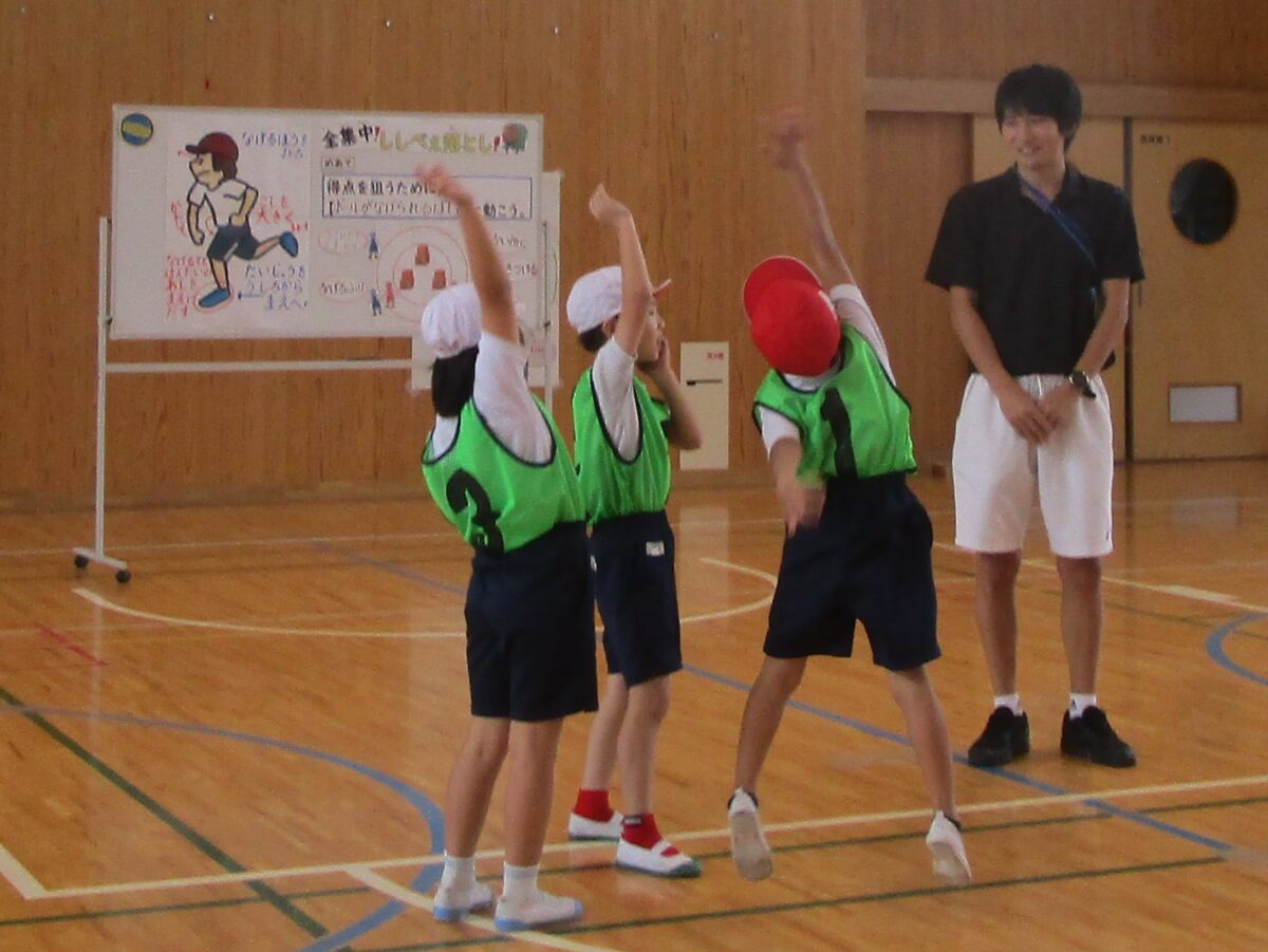 10月31日(火)、今日は本校を会場に体育授業研究会が開催されました。1・2年生は体育館でボールを使用したゲームを行い、運動量いっぱいの授業になりました。
