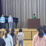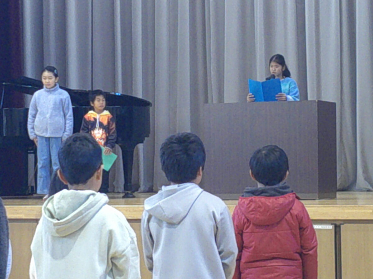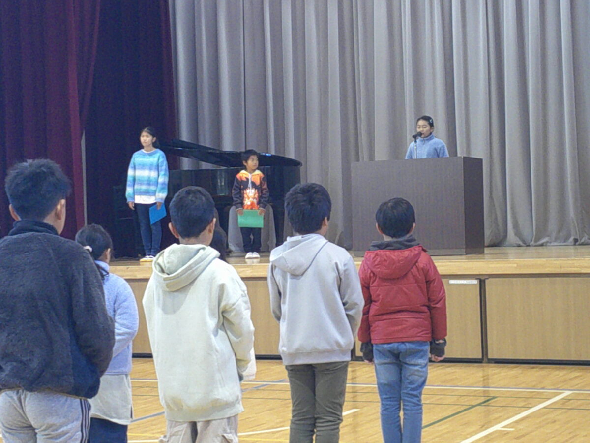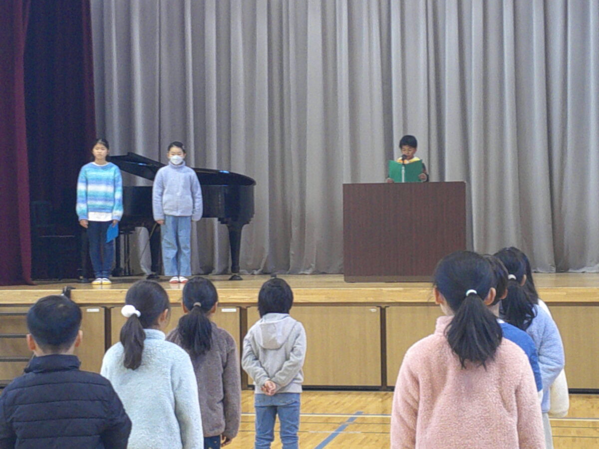 令和6年12月24日(火)、今日は2学期終業式を行いました。2学期を振り返って、3名の児童が発表してくれました。振り返ってみると、改めてたくさんの行事があったことを実感します。その中で、本校児童はよく頑張りました。これで満足することなく、3学期もさらなる高みを目指して頑張ってほしいです。