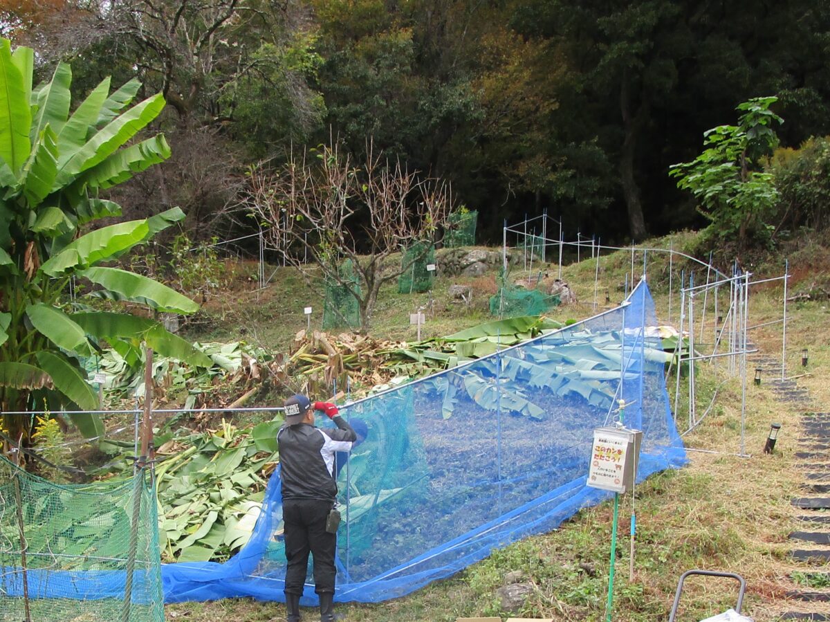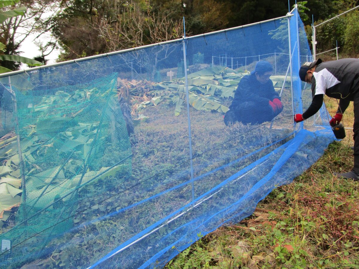 秩父市鳥獣対策課の方や埼玉県農林振興センターの方のご協力を得て、鹿や猿などの鳥獣対策として本校の果樹園に電気柵を取り付けていただいています。ありがとうございます。広大な果樹園の果樹やしいたけなどを野生動物から守るため、設置していただいておりますので、ご理解のほど、よろしくお願いします。