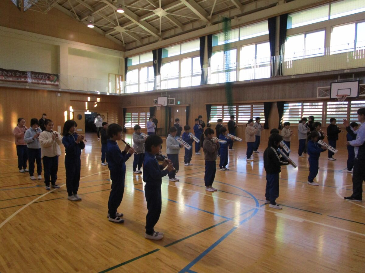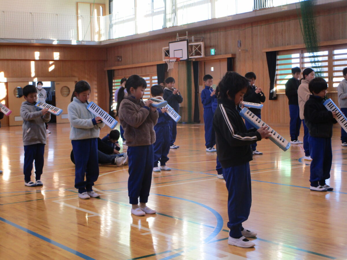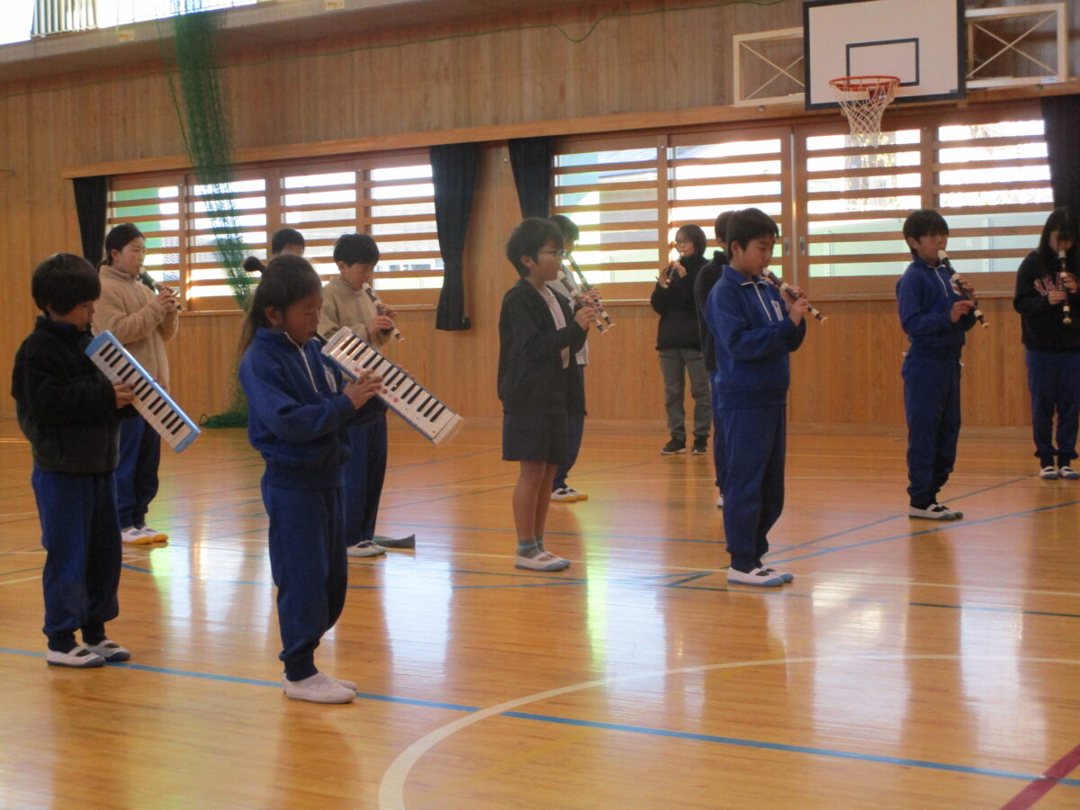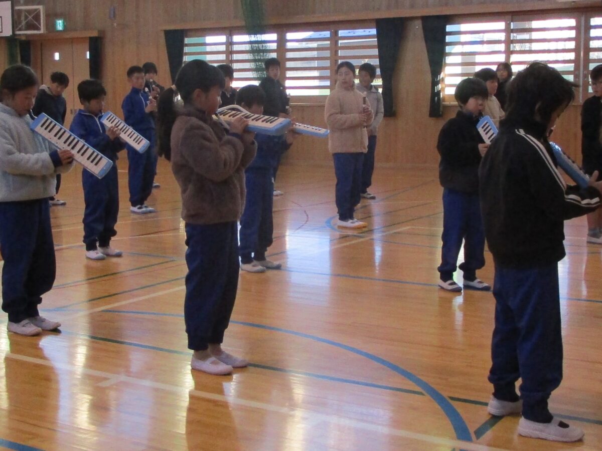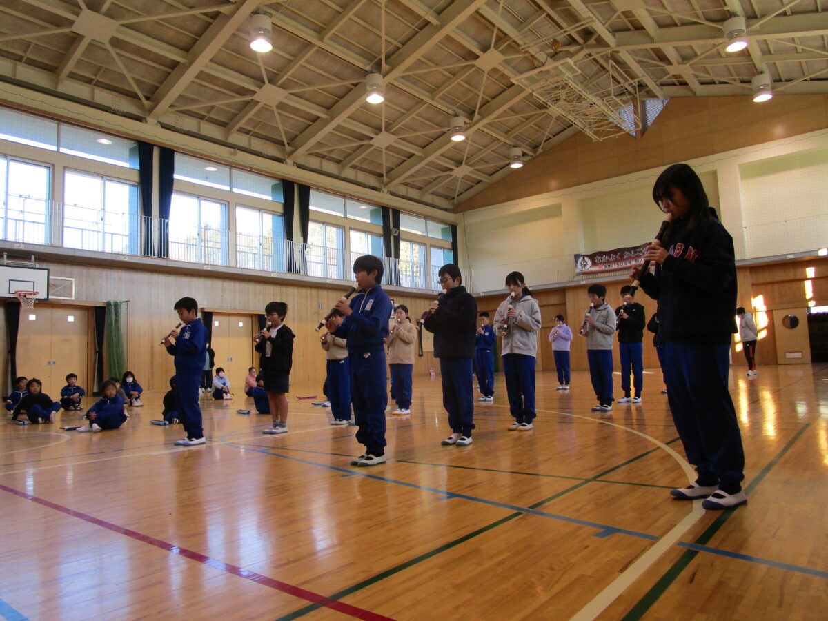 令和7年12月16日(火)、今日は音楽朝会で「よろこびの歌」の全校演奏をしました。1・2年生は鍵盤ハーモニカ、3・4・5年生はリコーダー、6年生はアルトリコーダーで演奏し、なんとも素敵な合奏になりました。それぞれが奏でる音が違うのに重なると素敵な音色になります。そんな音楽の素晴らしさがわかる音楽朝会になりました。