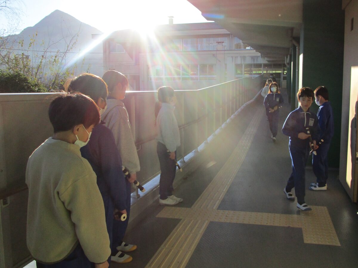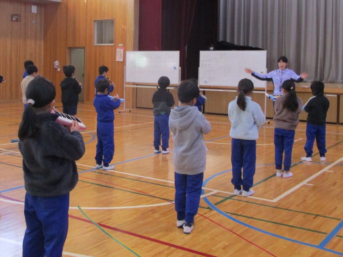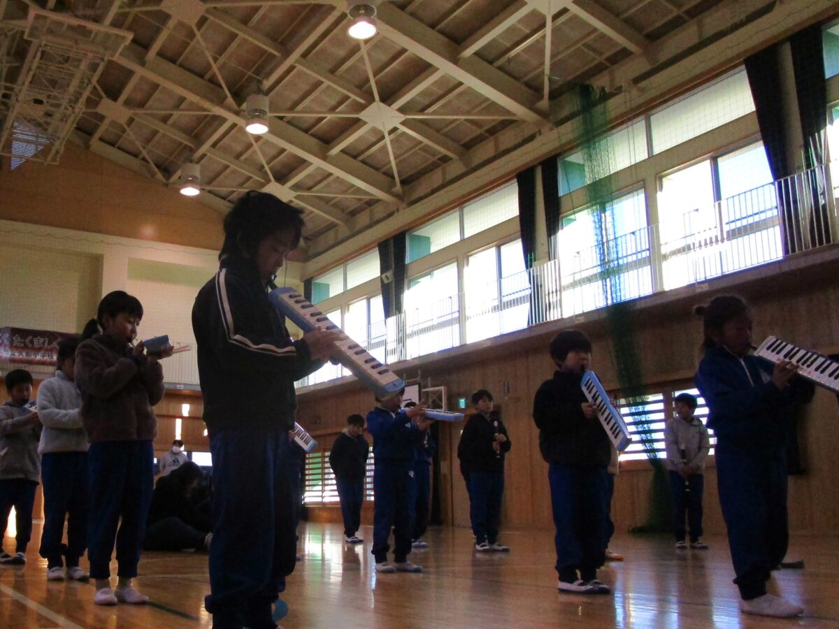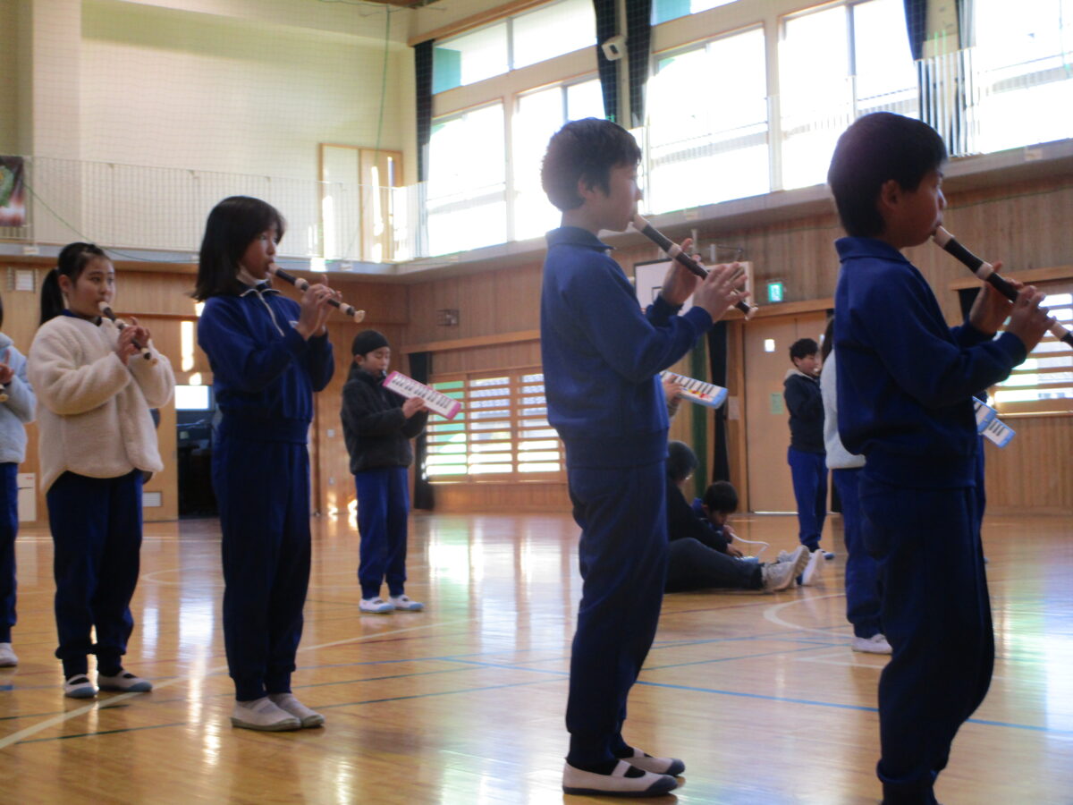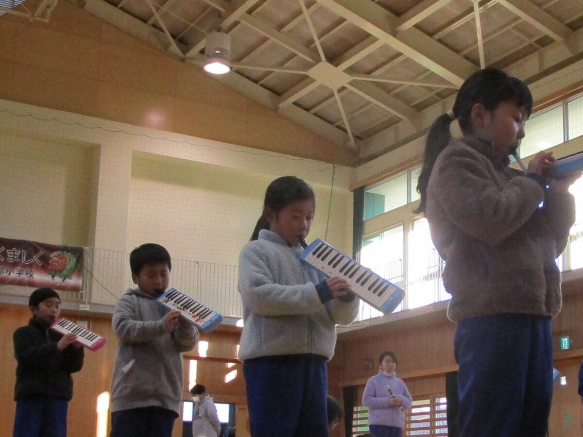 令和7年12月16日(火)、今日は音楽朝会で「よろこびの歌」の全校演奏をしました。1・2年生は鍵盤ハーモニカ、3・4・5年生はリコーダー、6年生はアルトリコーダーで演奏し、なんとも素敵な合奏になりました。それぞれが奏でる音が違うのに重なると素敵な音色になります。そんな音楽の素晴らしさがわかる音楽朝会になりました。