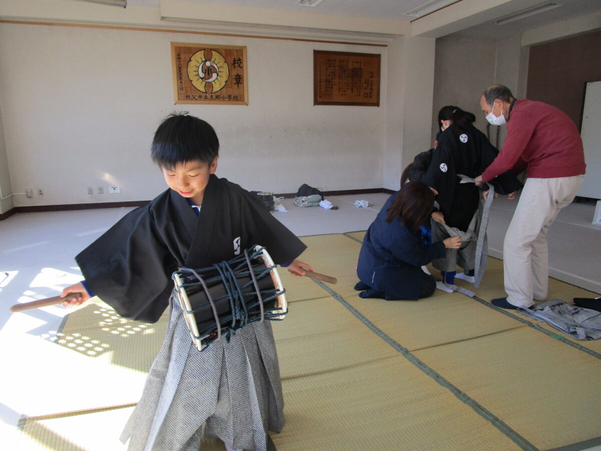 令和8年2月4日(水)、今日は3・4年生が総合的な学習の時間「久那学」で「久那獅子舞の伝承」を学びました。これまで、久那獅子舞保存会の方にも教えていただきました。今月15日(日)には秩父市歴史文化伝承館で「秩父市民俗芸能大会」が開催され、久那獅子舞を披露する予定です。