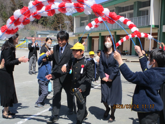令和8年3月24日(火)、今日は卒業証書授与式・門出式を挙行しました。あたたかな祝福を受け、7名の卒業生が久那小学校を立派に巣立っていきました。これからのさらなる活躍を期待しています。卒業生の皆さん、卒業おめでとうございます!