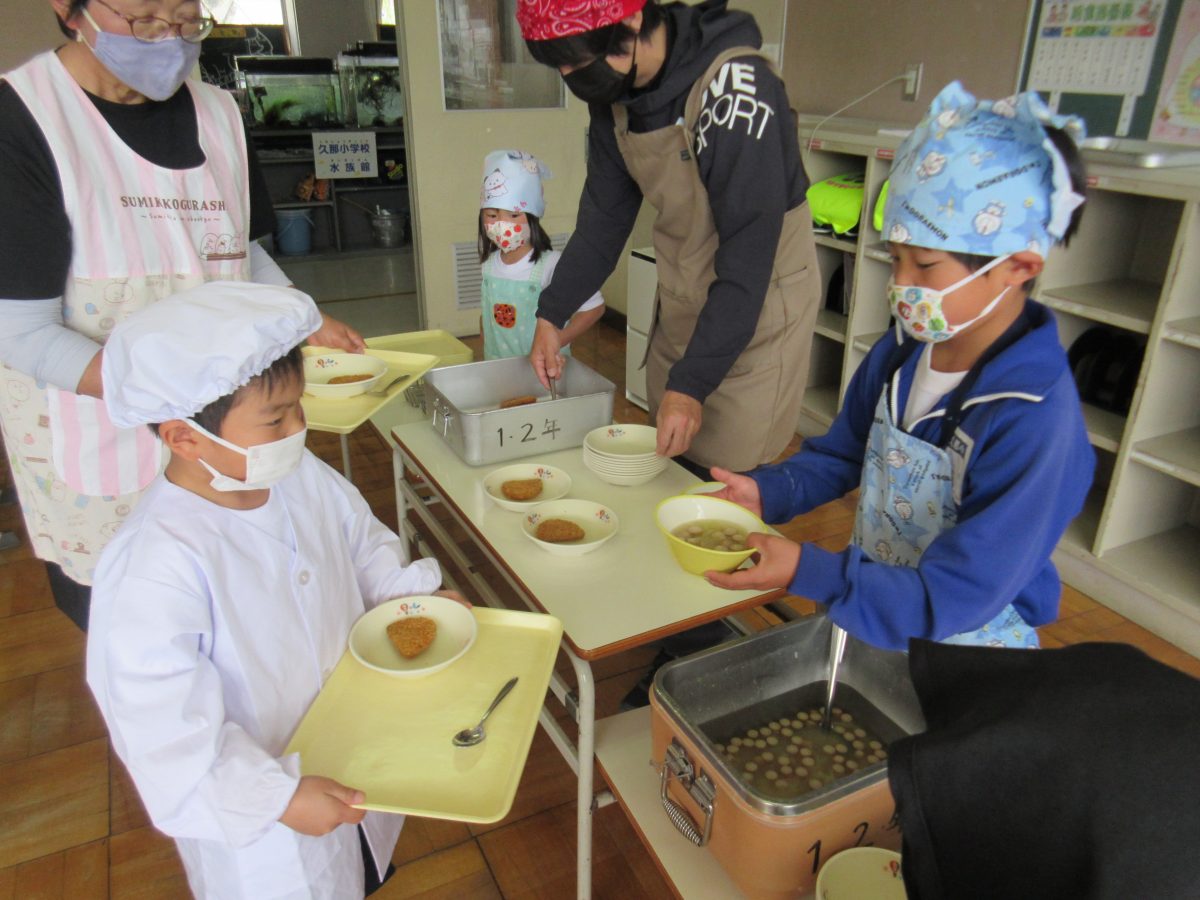 令和8年4月13日(月)、今日は1年生にとって初めての学校給食です。2年生が1年生に給食の準備や配膳の仕方を優しく丁寧に教えてあげていました。時にはそっと手を添えたり、声をかけながら一緒に運んだり・・・とても頼もしいです。