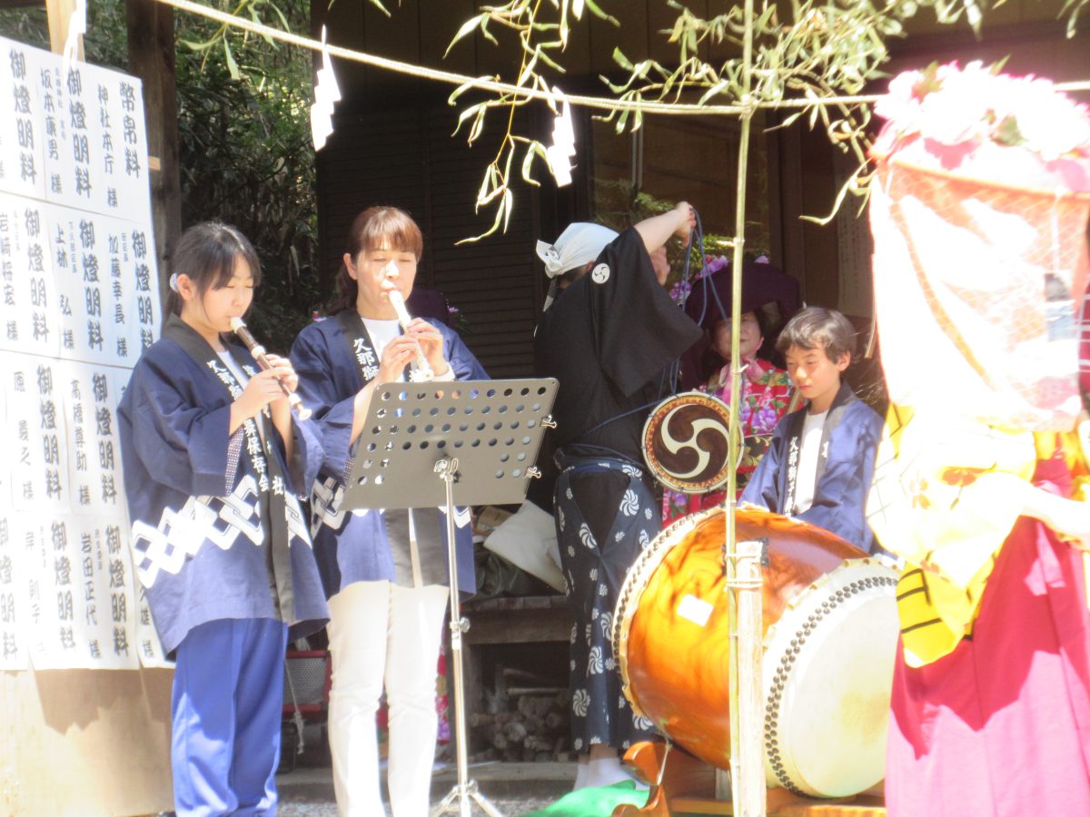 令和8年4月19日(日)、今日は久那・葛城神社例大祭で本校の4~6年有志の児童が久那獅子舞を披露しました。本校では総合的な学習の時間で伝統芸能継承活動として久那獅子舞保存会の方からご指導いただいています。今日は大勢の皆様の前でその成果を堂々と発揮することができました。