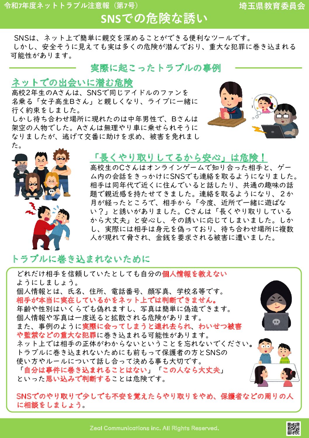 令和7年度ネットトラブル注意報第7号「SNSでの危険な誘い」