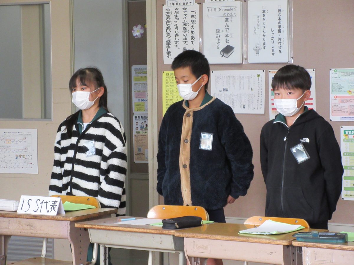 11月16日(水) 昼休みのセーフスクールタイムに、ISS代表者会議がありました。各委員会の児童から、現在の学校の課題と解決策、さらに安全で安心してよりよい学校生活を送るのにはどうしたらよいか、など話し合いが行われました。委員の児童達からは、「わからなければ、教えてあげる」「できなければ一緒にやる」など話がありました。上級生として、下級生の良きお手本となってくれています。誇らしい南っ子です。