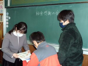 1月19日(木) 給食感謝の会が行われました。給食の始まりは、1889年。今から134年ほど前です。戦後、深刻な食糧難となり、育ち盛りの子ども達の栄養状態が心配され、改善するために始まりました。今日の給食感謝の会では、林栄養教諭さんと浅見配膳員さんに来ていただき、日々の感謝の気持ちを伝えました。南小学校の児童は、残食が少ないと話されていました。バランスよく食べて、運動に学習と健やかに成長して行きましょう。