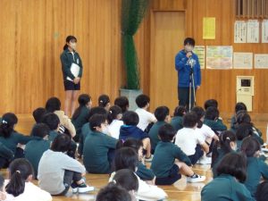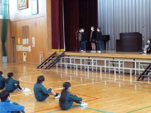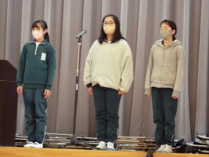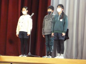 3月8日(水) 給食終了後、今年度最後のISS活動報告会がありました。6年生からのバトンを受け取り、5年生が発表しました。今年度、活動したことで改善されたところ、今後取り組んでいきたい活動、さらにより良くしたいところを全校に伝えました。6年生のリーダーシップのもと、工夫しながら様々な活動を行ってくれた5年生。今年度の活動を振り返り、来年度に向けて、新たな目標ができました。
