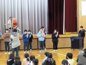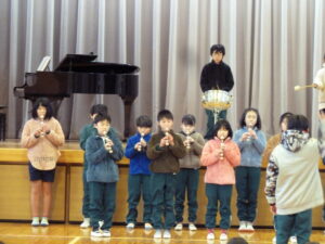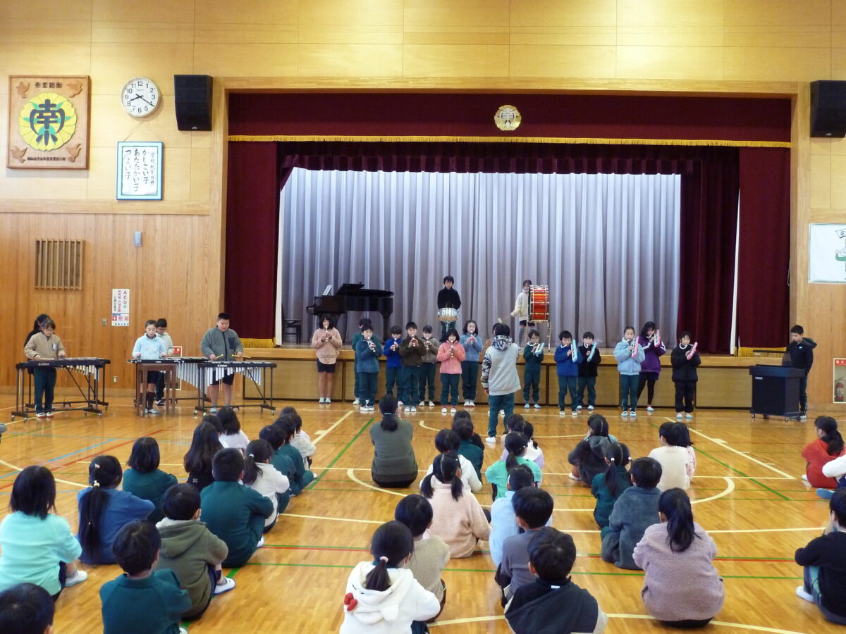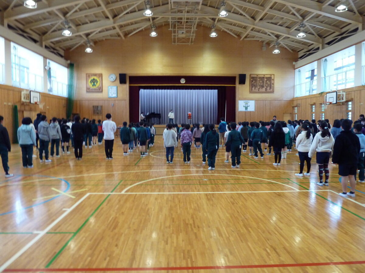 1月30日(火) 今朝、音楽集会を行いました。4年生が「茶色の小びん」の曲を歌ったり、演奏したりしました。リズムにのって、ひとりひとりが音を丁寧に重ね合わせました。全校では、「世界がひとつになるまで」を歌いました。平和を願い、優しい気持ちで歌いました。