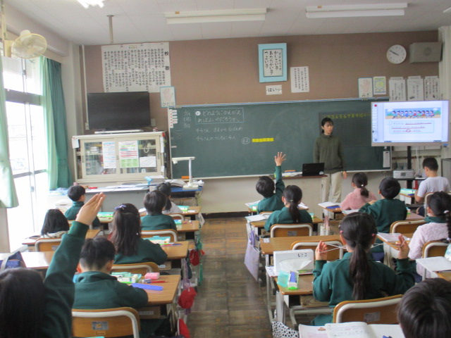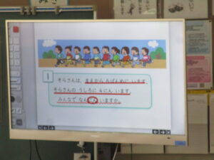 2月19日(月) 1年生が算数の授業で文章問題に取り組んでいました。