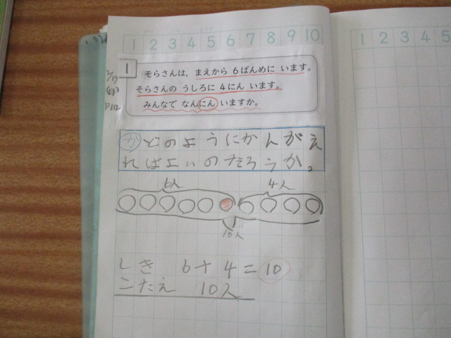 いろいろな作業等がありますが、文章題を考える上で大切な活動です。進級するまでに、しっかりとやり方を身につけてください。