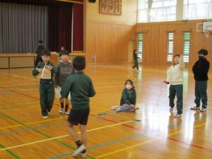 2月26日(月) 3年生が5時間目に、今週末(3月1日)に行われる6年生を送る会の練習に取り組んでいました。