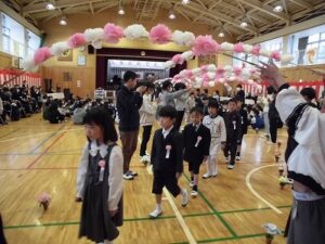 式の中では、新1年生の呼名がありました。大きな声で返事ができた子がいたり、緊張して少し小さな声になってしまったりした子もいましたが、自分の名前が呼ばれたら、返事をして立つことができました。