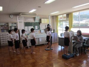 4月10日(水) 全学年児童の発育測定(身長・体重)と視力検査を行いました。