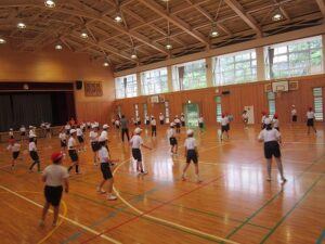 今日は雨が降っていたため、屋外スポーツクラブは体育館でバドミントン・ソフトバレークラブと一緒にドッジボールを行いました。屋内レクリエーションはイラストを描いていました。