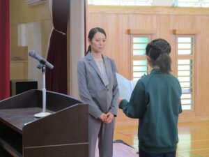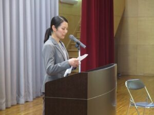 代表の子どもが手紙を読んで渡してから、先生のお話を聞きました。