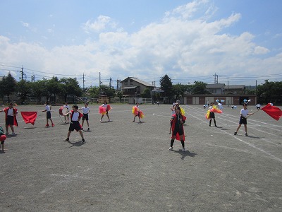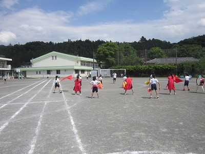 昼休みには、紅白の応援団が外で練習を行っていました。始めから終わりまでを通しての練習です。全体で行うとどうなるか楽しみです。