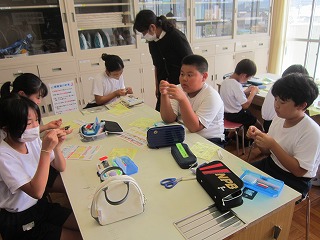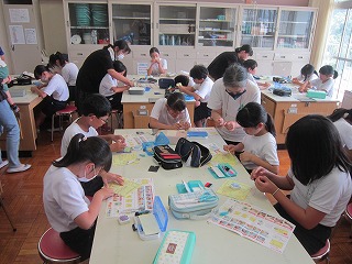 6月14日(金) 5年生が3時間目の家庭科の時間に裁縫の学習を行いました。PTAの家庭教育委員さん4名の方にボランティアとして来校していただき、子ども達の補助をお願いしました。