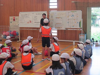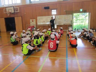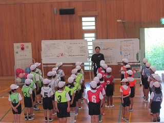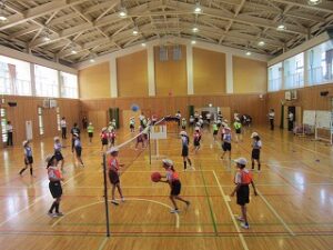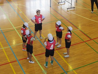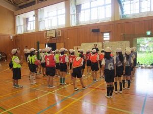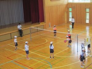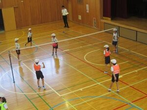 横山 祐樹 様、秩父市教育委員会教育研究所 指導主事 中山 明俊 様をお招きし、4年生体育科の「キャッチバレーボール」の授業を参観していただきました。この授業では、「パスを繋げて攻撃しやすい場所に動こう。」をめあてに取り組みました。子ども達は、めあてに向かって、声を出したり、元気よく動いたりして汗をかきながら活動していました。