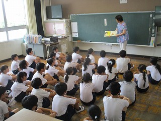 7月4日(木) 朝の業前活動で「moco moco(モコモコ)」様のボランティアの皆様による読み聞かせがありました。1学期の読み聞かせは、今日が最後です。