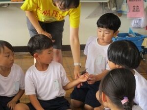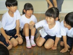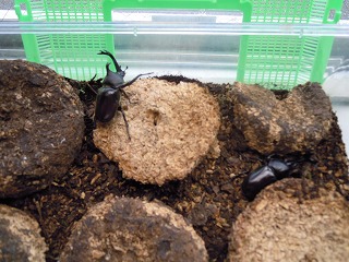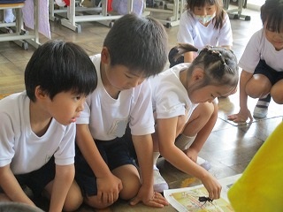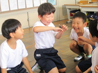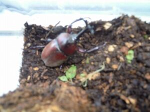 7月4日(木) 5月14日に1年生がカブトムシの先生、横田様にいただいたカブトムシの幼虫が羽化し、成虫になっているのが確認できました。オス3匹、メス1匹です。今朝、登校してきて観察していた子が知らせてくれました。3時間目には、成虫を観察しました。