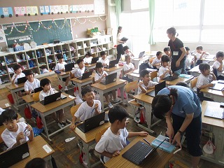 7月5日(金) 4時間目に1年生がタブレットを使っての授業をしました。