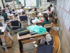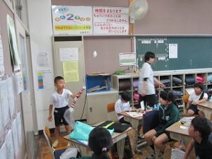 9月25日(水) 2年生が3・4時間目の生活科の時間に「うごく うごくわたしのおもちゃ」という単元で、各自がおもちゃ作りをしていました。風や空気を利用して動かしたり、輪ゴムを使って動かしたりと子ども達が考えて作っていました。ある程度できあがってから動くか試してみると、うまく動かない子もいましたが、先生にアドバイスをもらって工夫を加えると、動くようになって喜んでいる子もいました。楽しい動くおもちゃが完成できるといいですね。