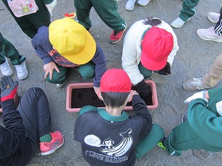 12月10日(火) 冷え込んだ寒い朝でしたが、業前活動に美化活動を行いました。校舎前の花壇やプランターにチューリップの球根を植えました。五色の球根があり、咲いたときに色が重ならないよう、考えながら丁寧に植えました。来年の春には、色とりどりの花を咲かせ、新年度の子ども達を迎えてくれることでしょう。これから寒さが厳しくなりますが、球根は春まで土の中で静かに成長し続けます。