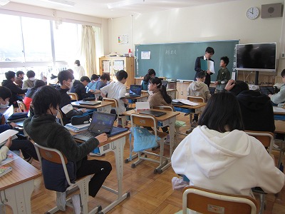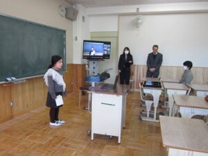 12月24日(火) 2学期終業式をリモートで行いました。子ども達は各教室で静かに式に臨みました。